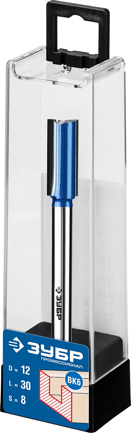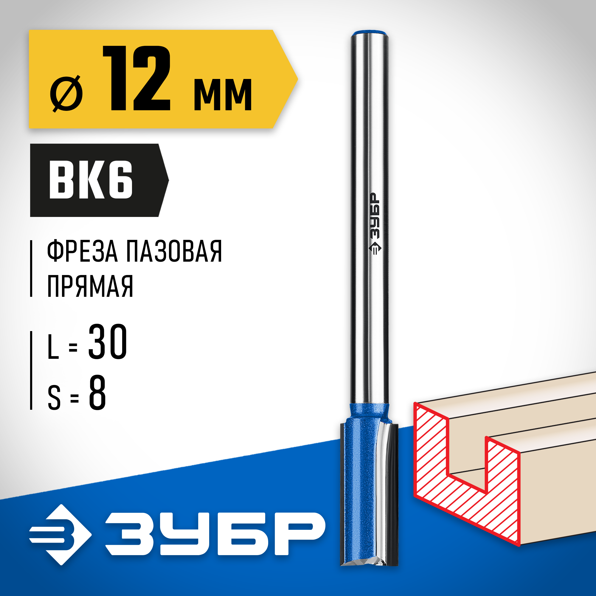 ЗУБР 12 x 30 мм, хвостовик 8 мм, фреза пазовая прямая с нижними подрезателями, Профессионал (28755-12-30)