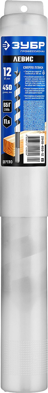 ЗУБР 12 x 450/360 мм, шестигранный хвостовик, cверло левиса по дереву, Профессионал (2948-450-12)