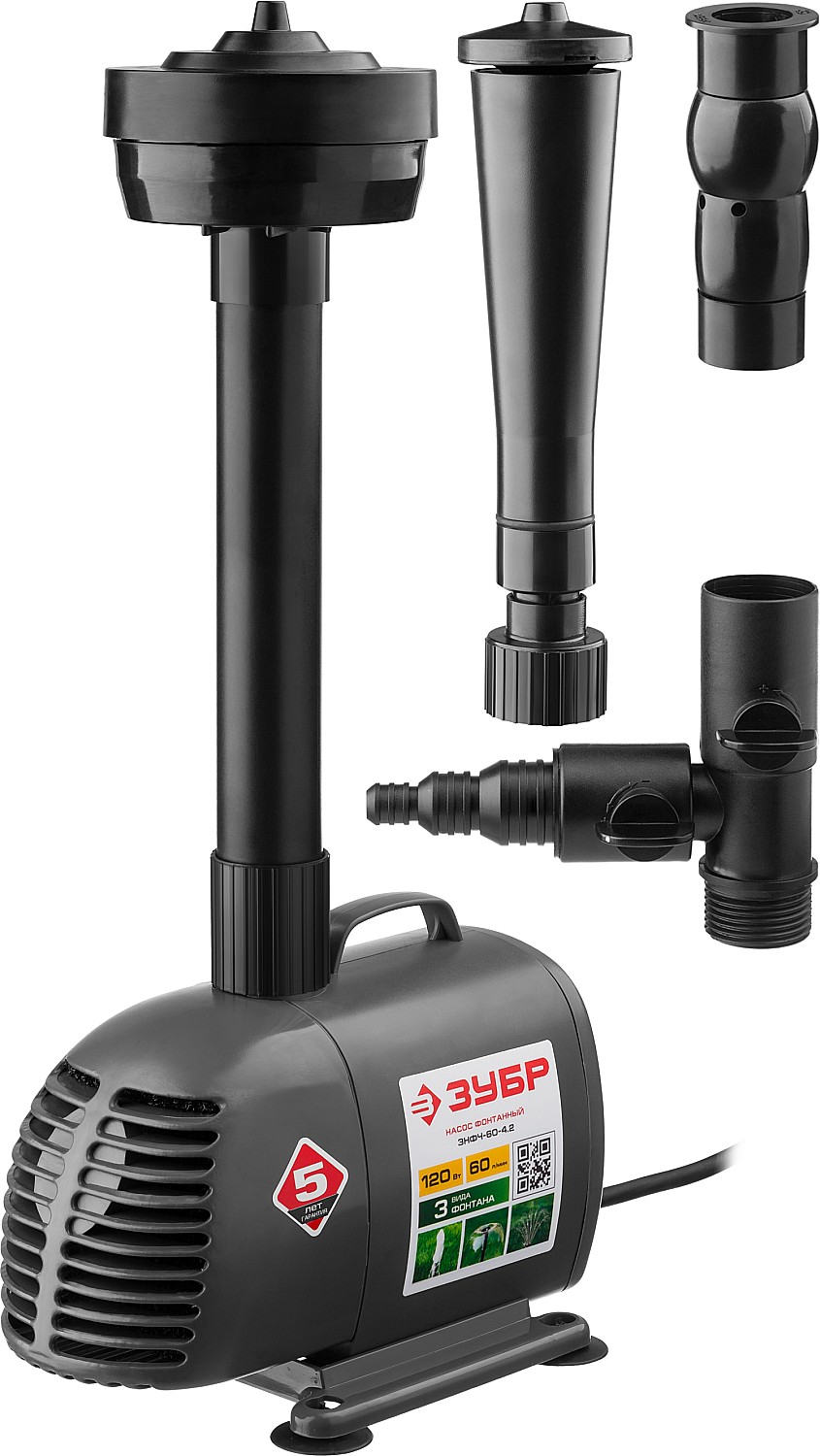 Простое средство для украшения сада. Обычный пруд с установкой насоса превращается в фонтан, причем, благодаря сменным насадкам, форма струи легко меняется между ″гейзером″, ″каскадом″ и ″колокольчиком″, а также может переключаться на водопад. Таким образом, одно изделие способно изменить Ваш пруд или сад, привнеся в него веселое и успокаивающее журчание воды, под которое так приятно отдыхать после рабочей недели