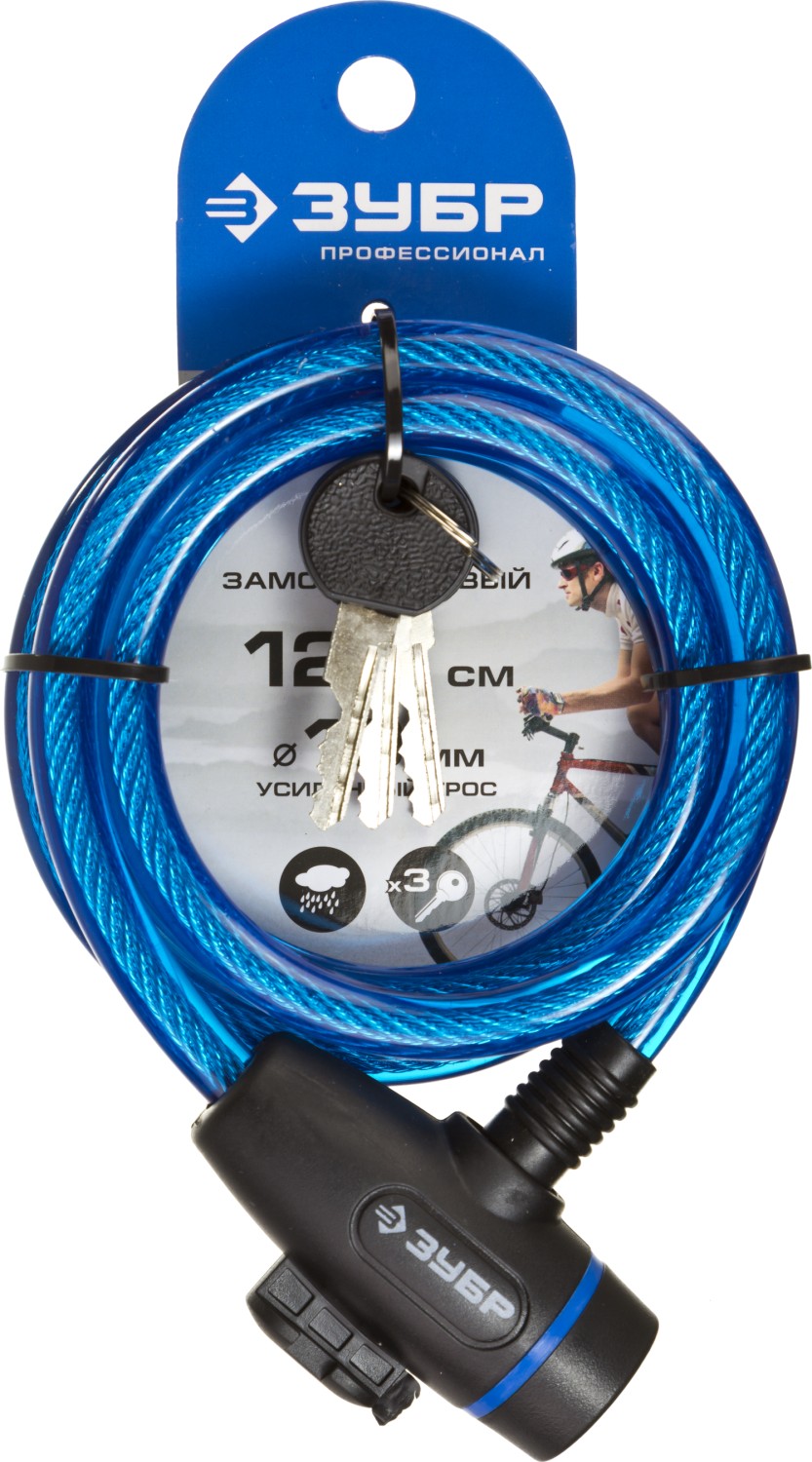 Замок навесной тросовый предназначен как для запирания хозяйственных помещений, так и для предотвращения краж велосипедов, мопедов, колясок и др. Замок может использоваться в районах с умеренным и холодным климатом.