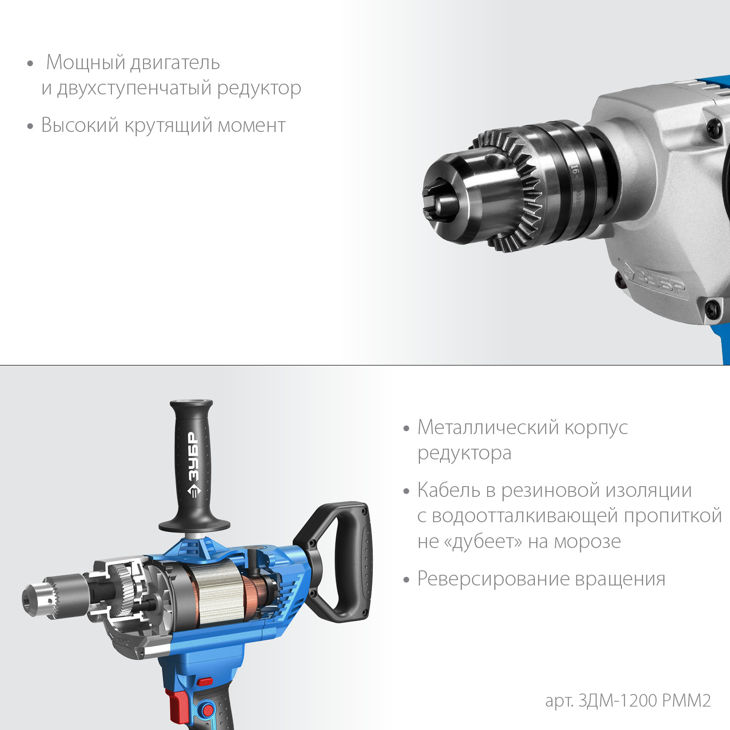 Лидер по соотношению мощность/удобство при сверлении отверстий в различных материалах, а также перемешивании жидких растворов ЛКМ. Профессиональный инструмент, каким он должен быть: крепкий, надежный и удобный в работе ЗУБР - сделано для Вас