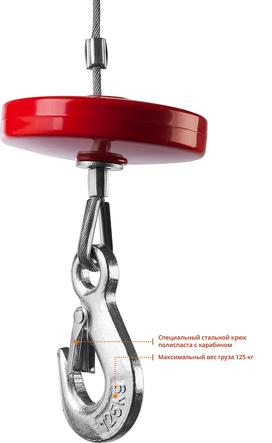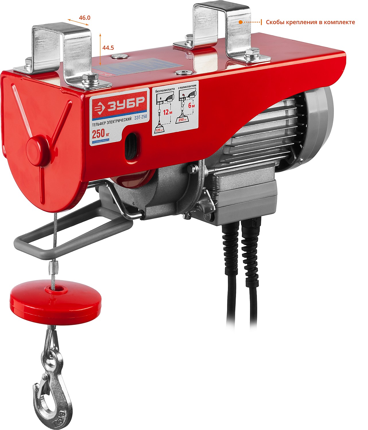 - Возможна работа в режиме с полиспастом. В этом режиме подъемный вес увеличивается в два раза