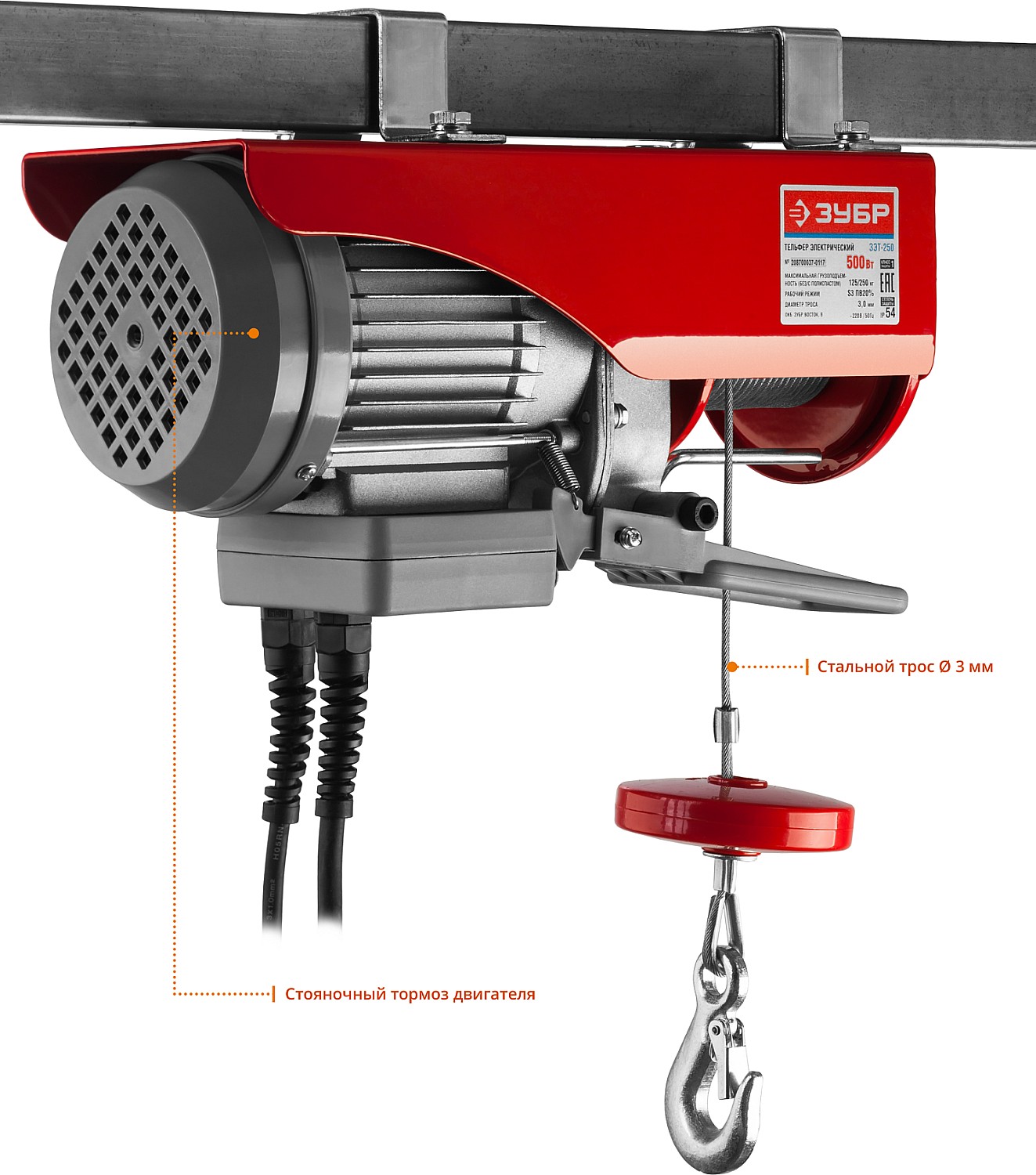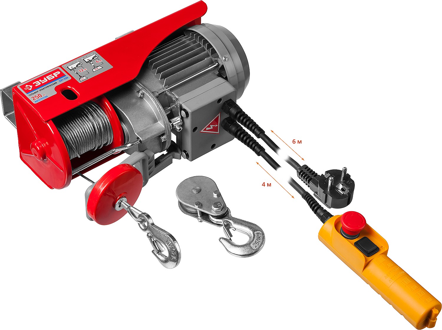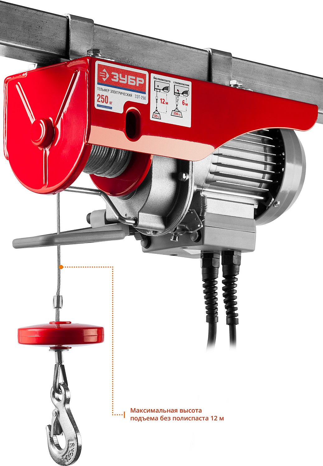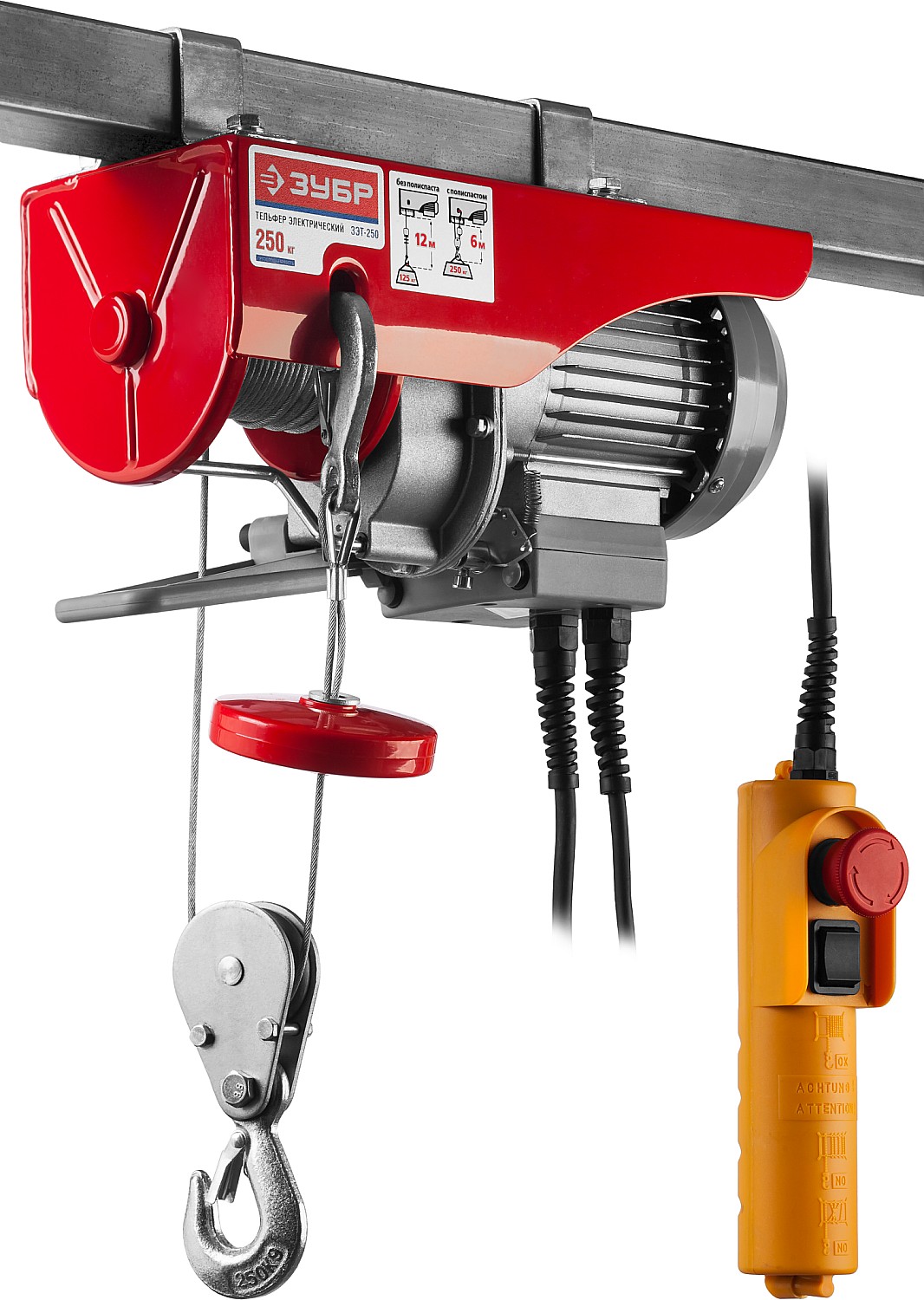 Тельфер для простого и безопасного подъема различных грузов. Незаменим на складе, в гараже или стройплощадке. Безопасность оператора и изделия обеспечивается выносным пультом и всеми необходимыми защитными блокировками