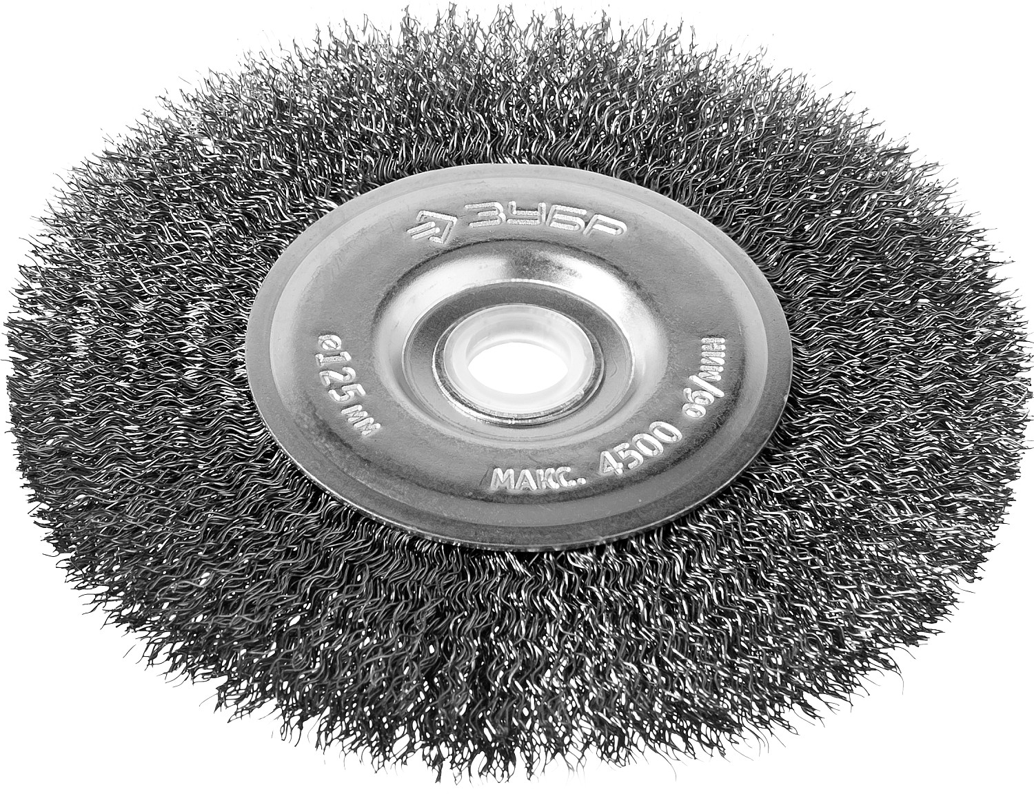 ЗУБР 125 х 12.7 мм, витая, стальная проволока 0.3 мм, дисковая щетка-крацовка для точильно-шлифовального станка, Профессионал (35185-125)