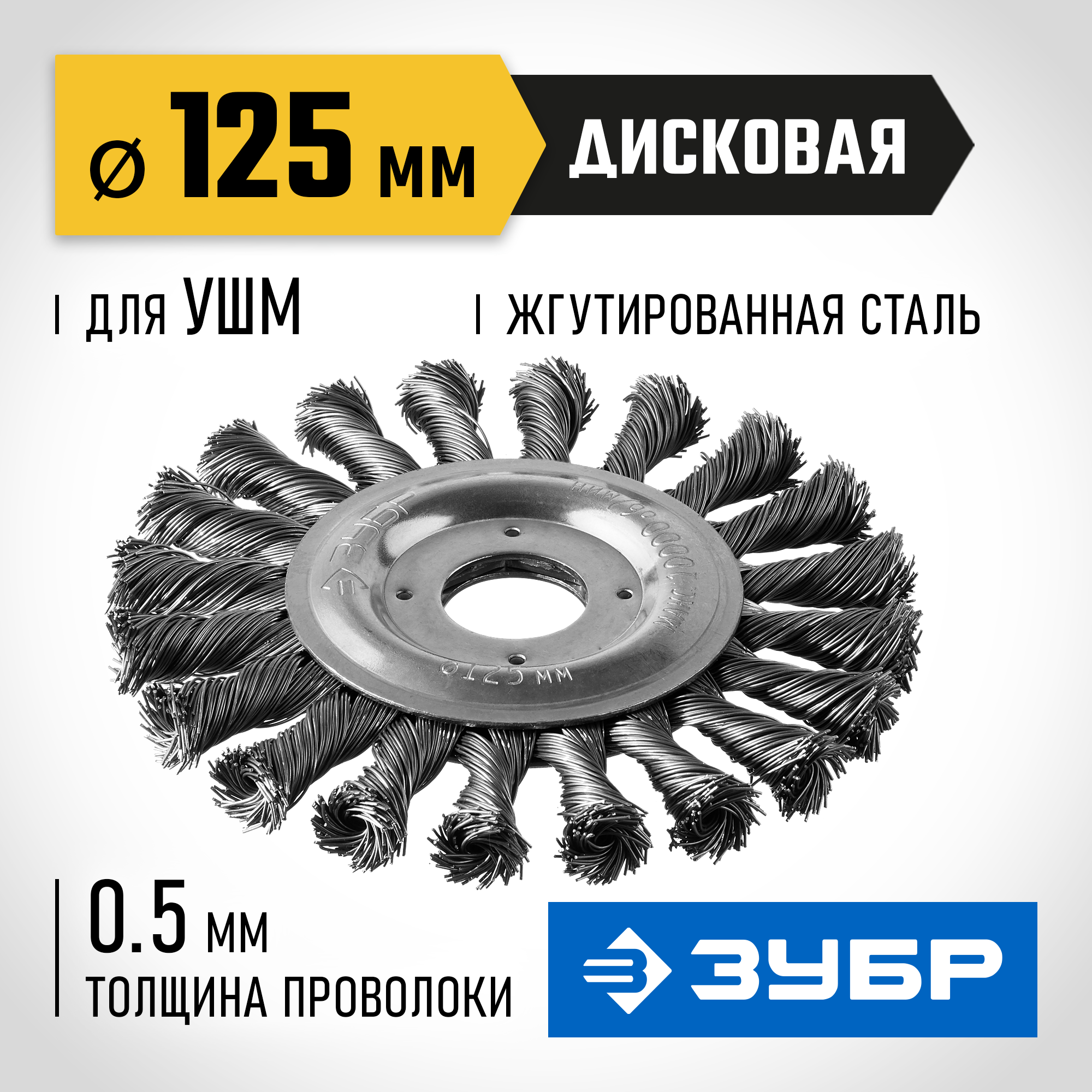 ЗУБР 125 мм, стальная проволоки 0.5 мм, щетка дисковая для УШМ, Профессионал (35190-125)