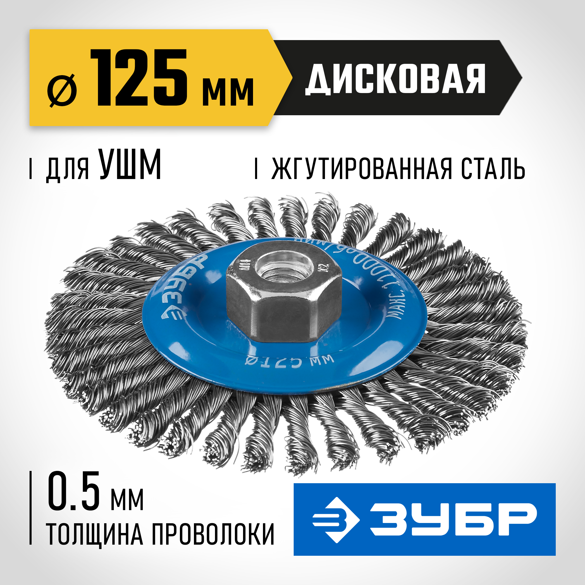 ЗУБР 125 мм, стальная проволоки 0.5 мм, щетка дисковая для УШМ, Профессионал (35192-125)