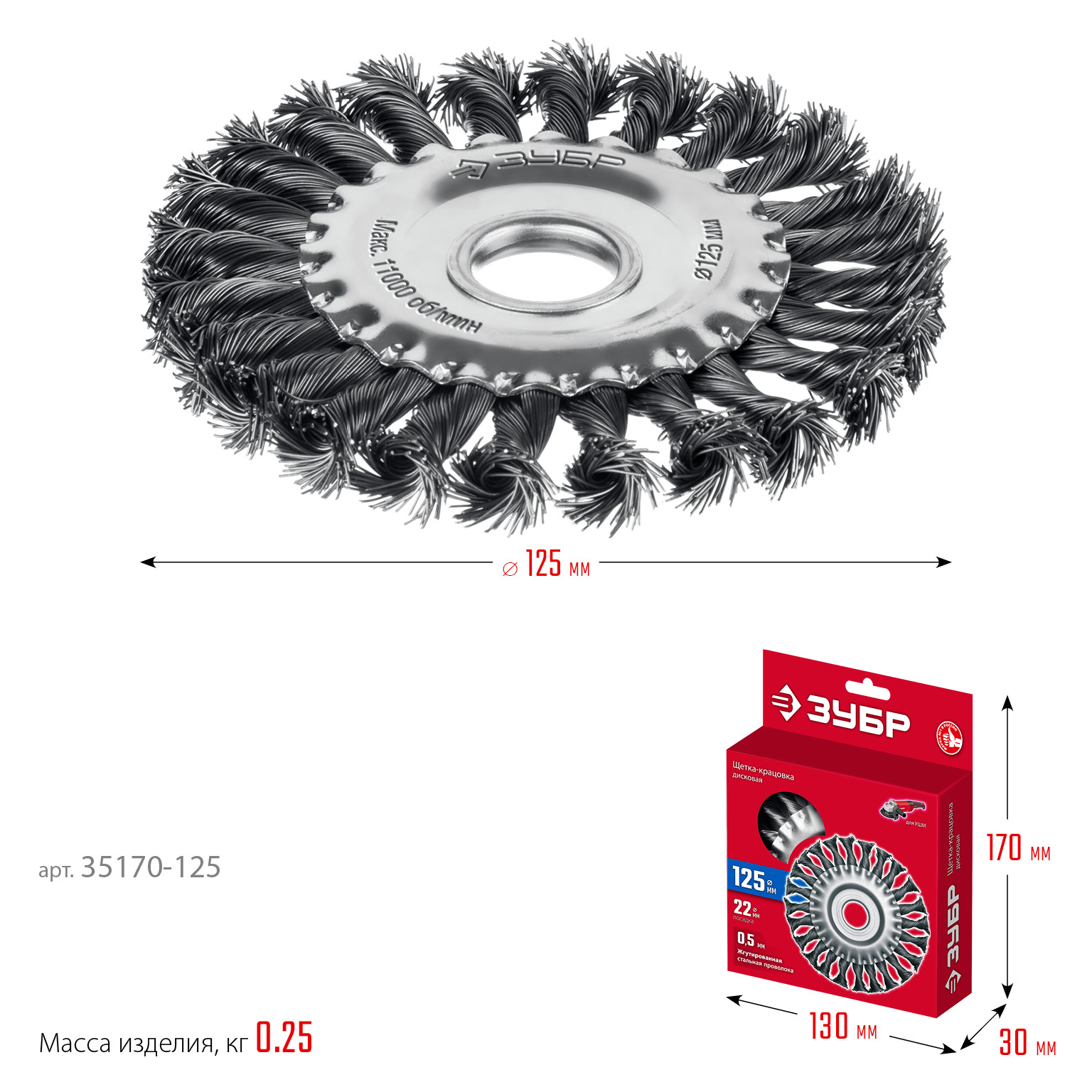 Все изготавливаемые щетки ЗУБР соответствуют действующим стандартам качества и обеспечивают безопасную работу в указанном диапазоне оборотов. Применяются на УШМ для зачистки поверхностей в труднодоступных местах от лакокрасочных покрытий, ржавчины, окалины, различных загрязнений с применением значительных усилий, а также для зачистки сварных швов.