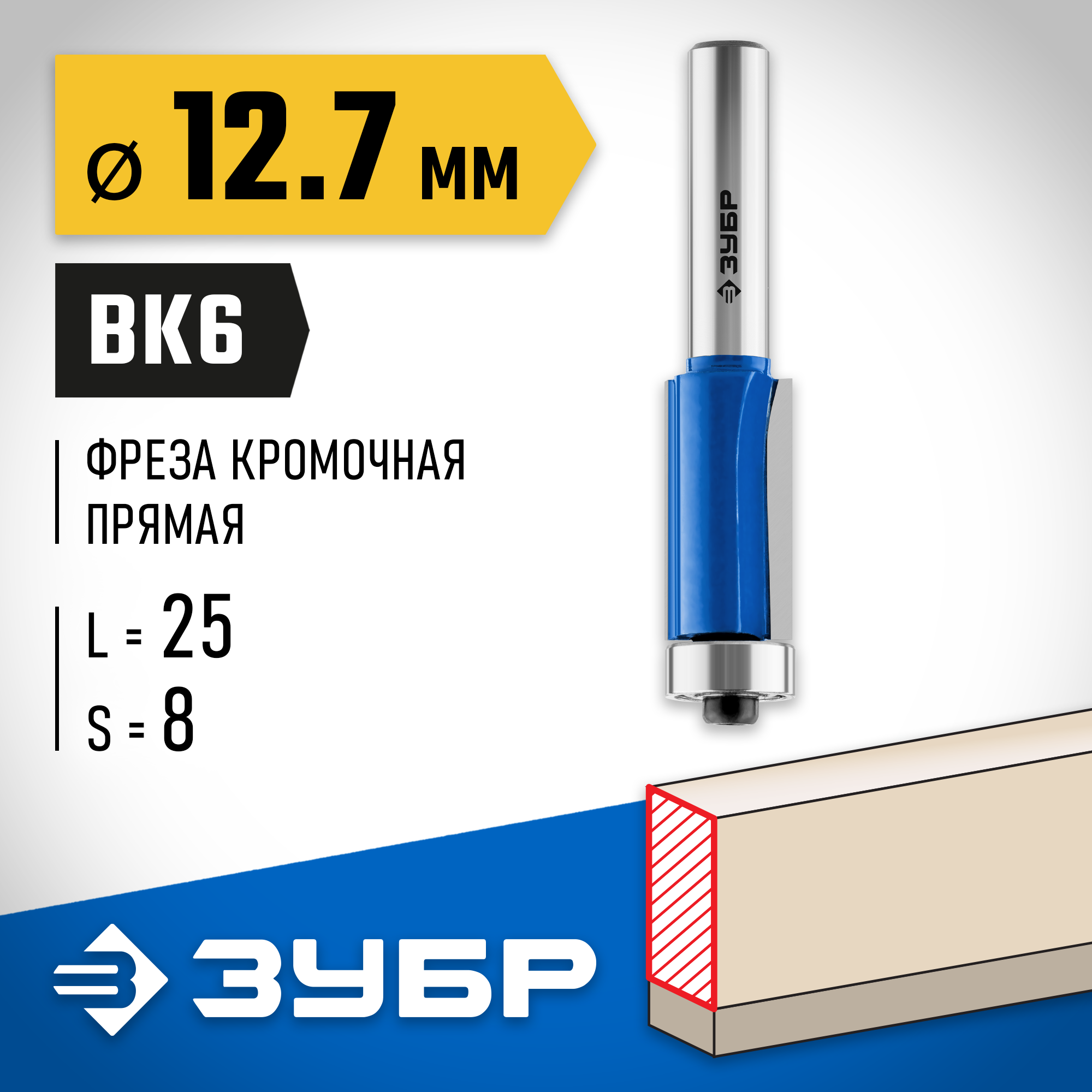 ЗУБР 12.7 x 25 мм, хвостовик 8 мм, фреза кромочная с нижним подшипником, Профессионал (28727-12.7-25)