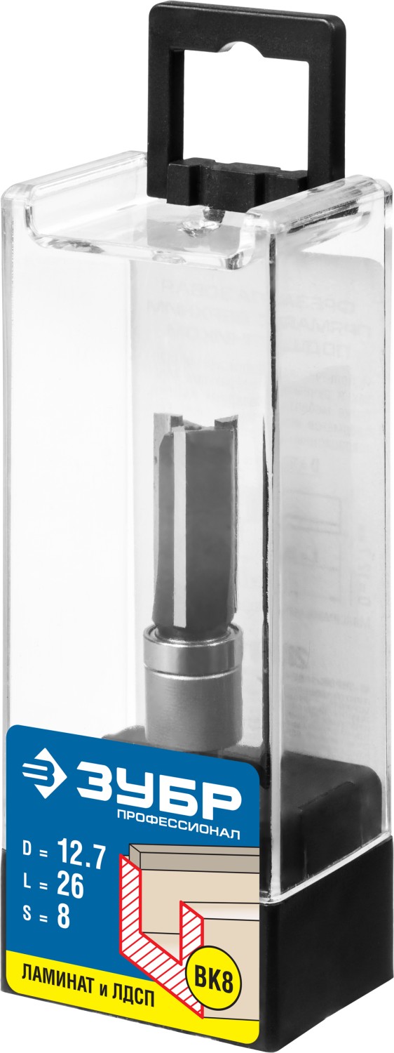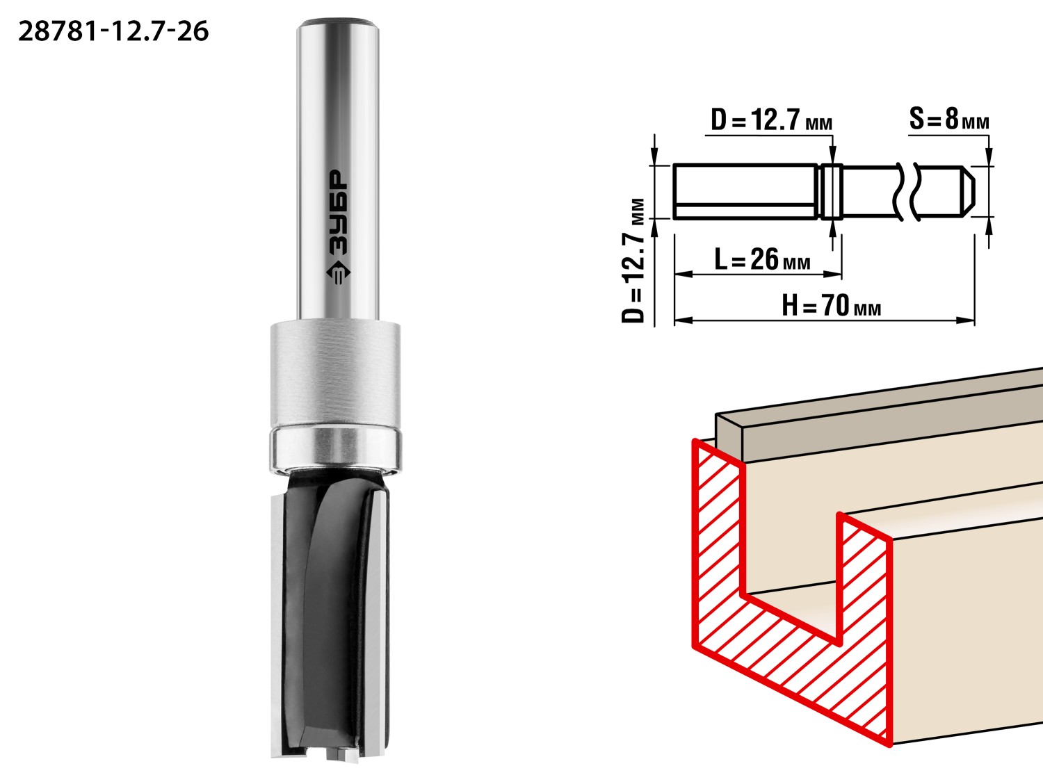 ЗУБР 12.7 x 26 мм, хвостовик 8 мм, фреза пазовая прямая с верхним подшипником, Профессионал (28781-12.7-26)