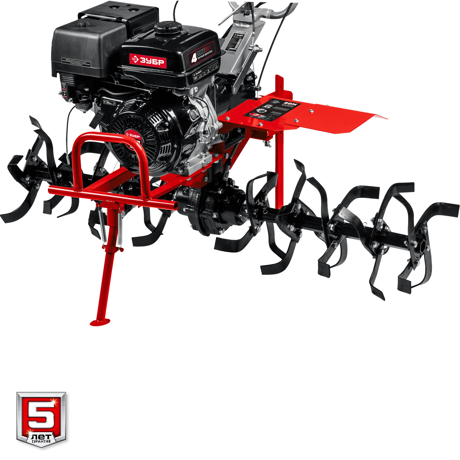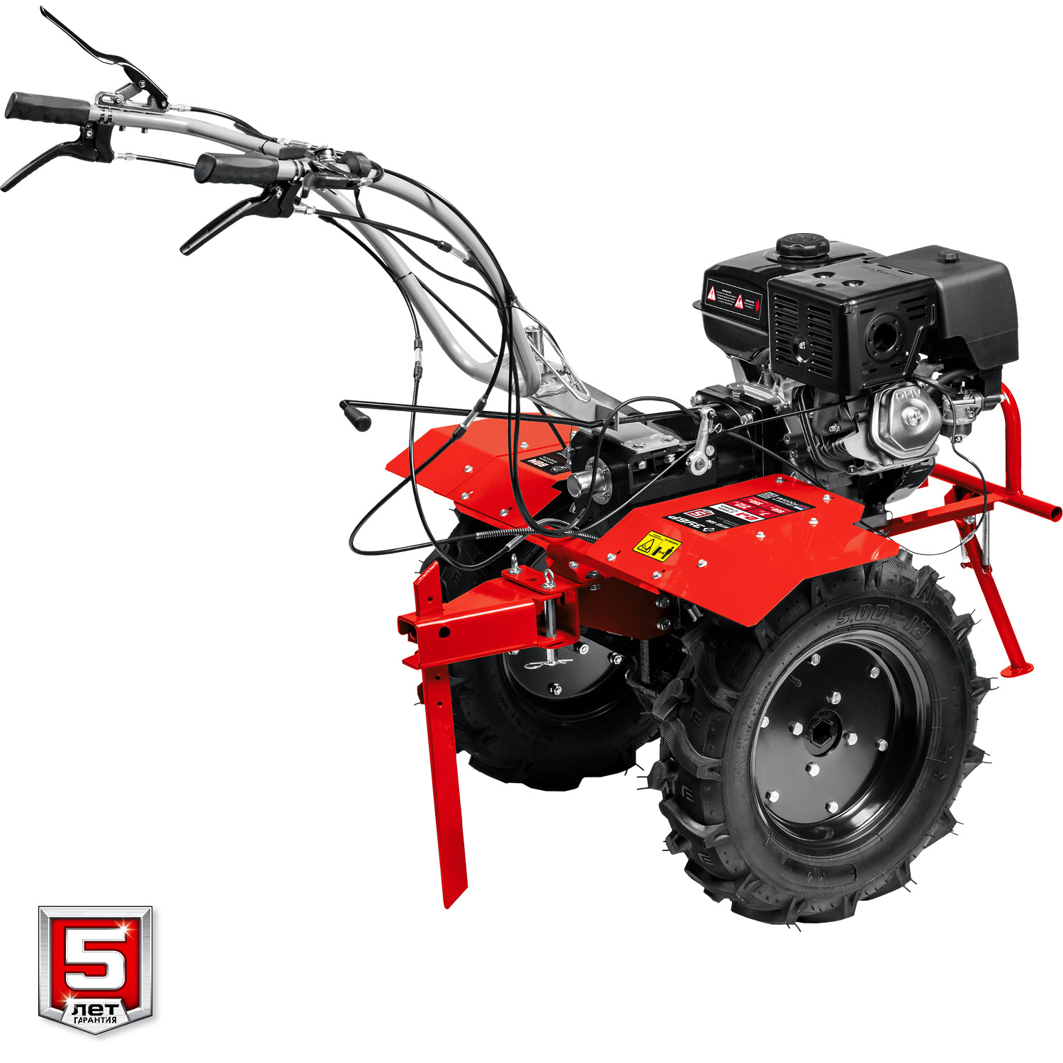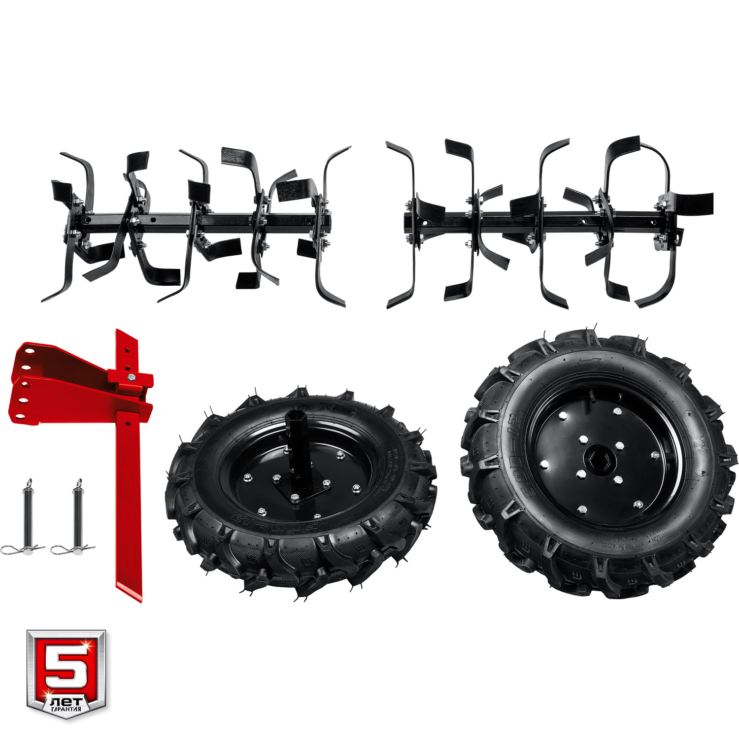 Мощный бензиновый мотоблок предназначен для рыхления и культивирования, а при использовании дополнительного навесного оборудования спектр применения мотоблока значительно расширится. Модель предлагает отличное сочетание высокой производительности, управляемости и устойчивости. В комплекте поставки входит 4 фрезы (2 правых и 2 левых) с увеличенной длиной, которые устанавливаются в непосредственной близости к редуктору и повернуты в его сторону. Увеличенная длина фрез используется для улучшения обработки почвы под редуктором. Сделано в России