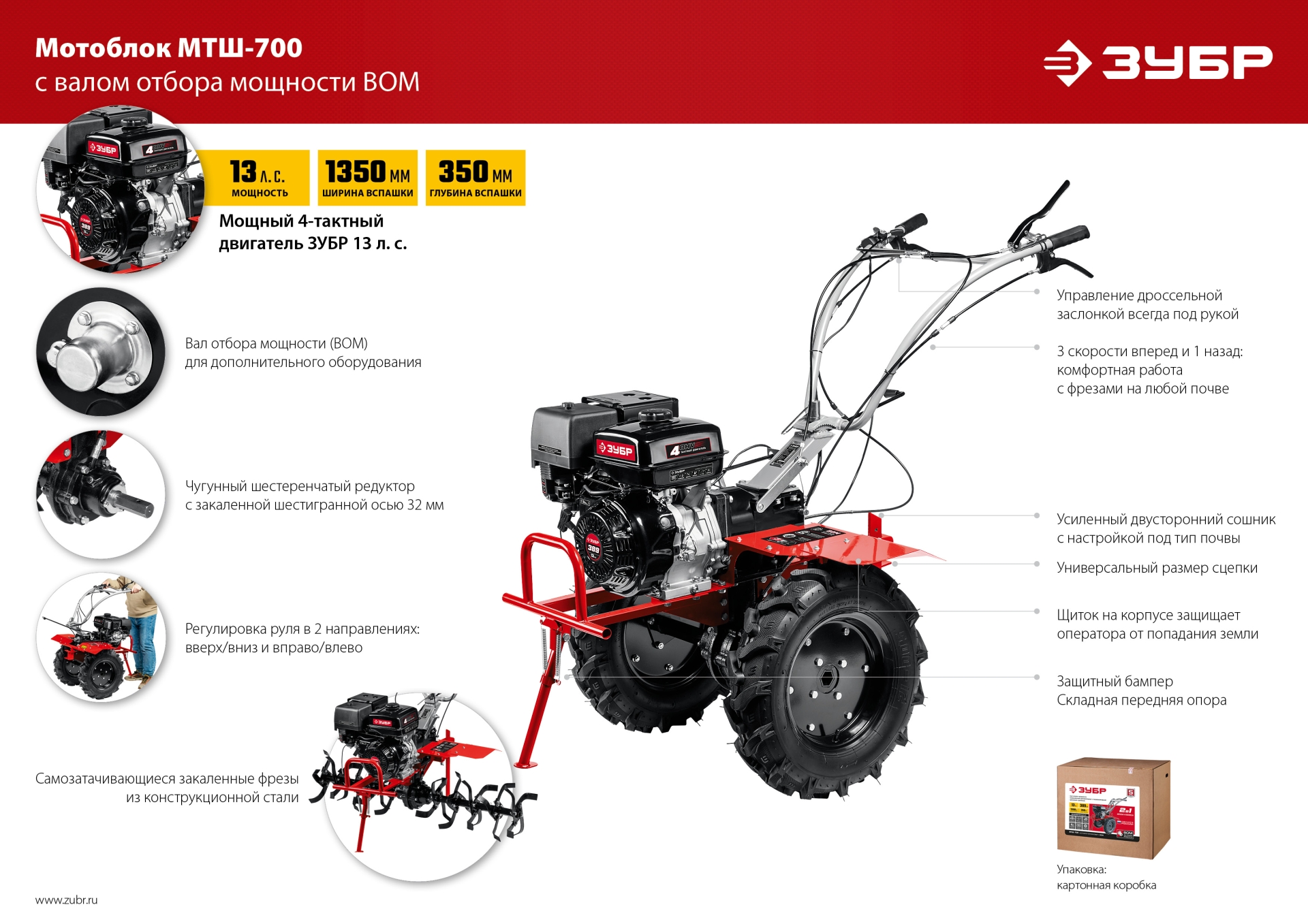 - Конструкция мотоблока позволяет использовать его с различными навесными оборудованием