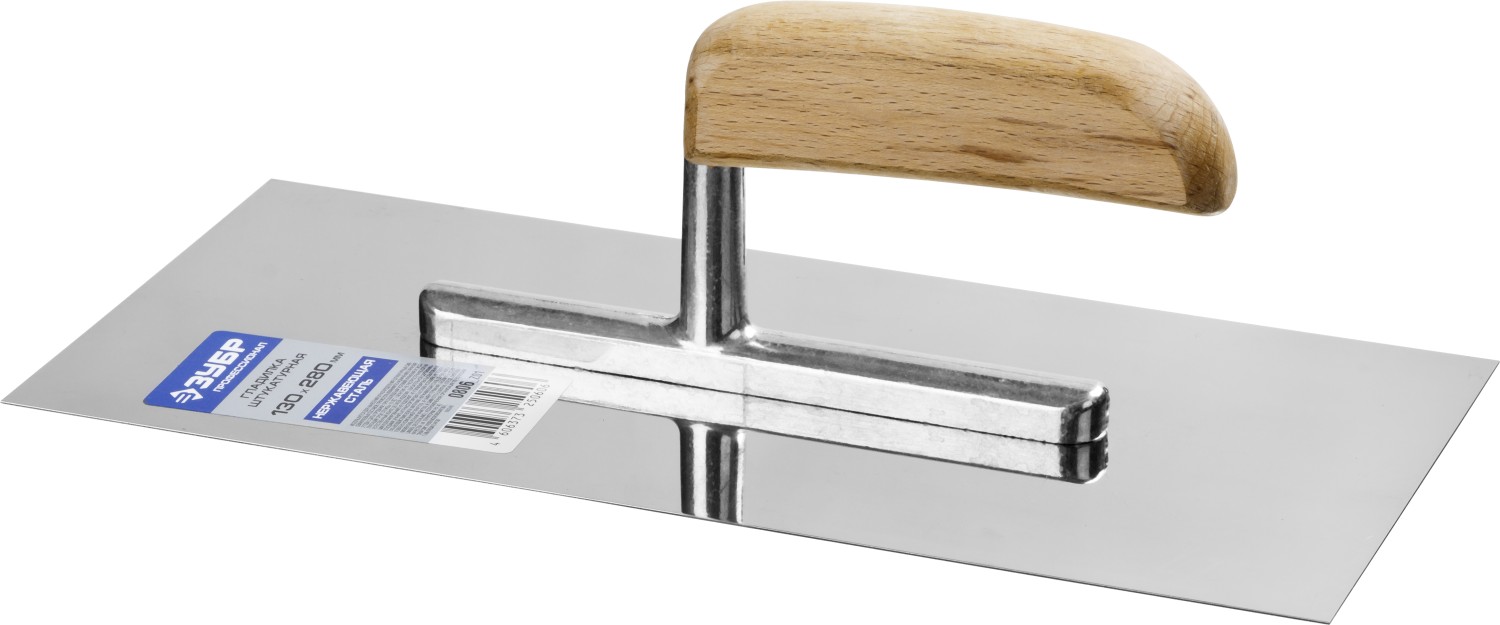 Зеркально отполированное нержавеющее полотно обеспечит надежность конструкции, лучшую защиту от коррозии, а удобная деревянная рукоять обеспечит комфортную работу при нанесении и распределении штукатурных смесей и клеевых составов.