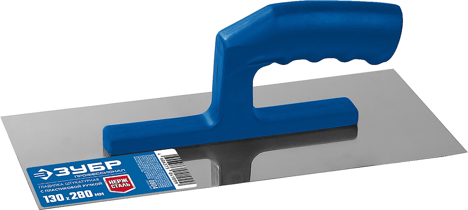 Зеркально отполированное нержавеющее полотно обеспечит надежность конструкции, лучшую защиту от коррозии, а удобная рукоять из ударопрочной пластмассы обеспечит комфортную работу при нанесении и распределении штукатурных смесей и клеевых составов.