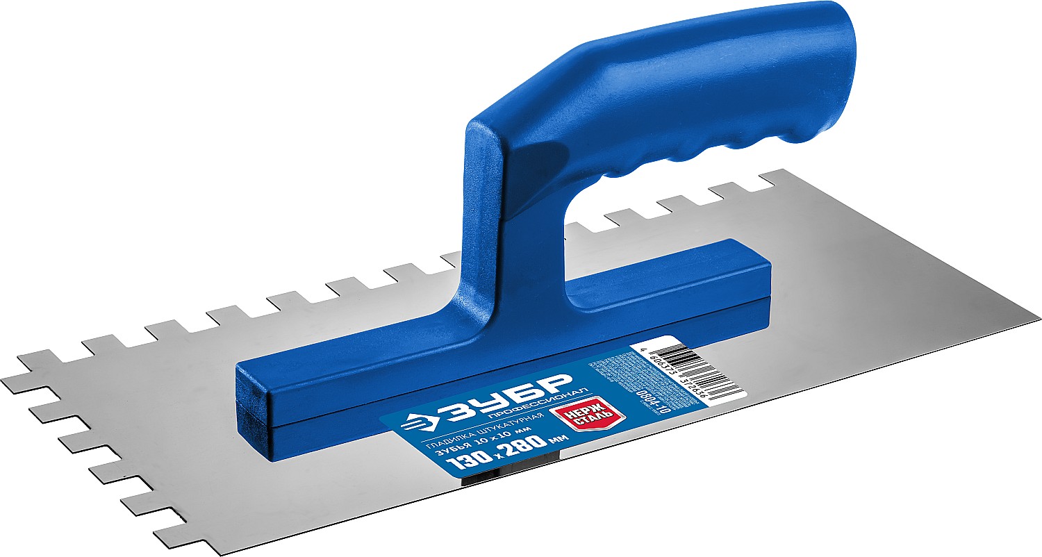 Зеркально отполированное нержавеющее полотно обеспечит надежность конструкции, лучшую защиту от коррозии, а удобная рукоять из ударопрочной пластмассы обеспечит комфортную работу при нанесении и распределении штукатурных смесей и клеевых составов.