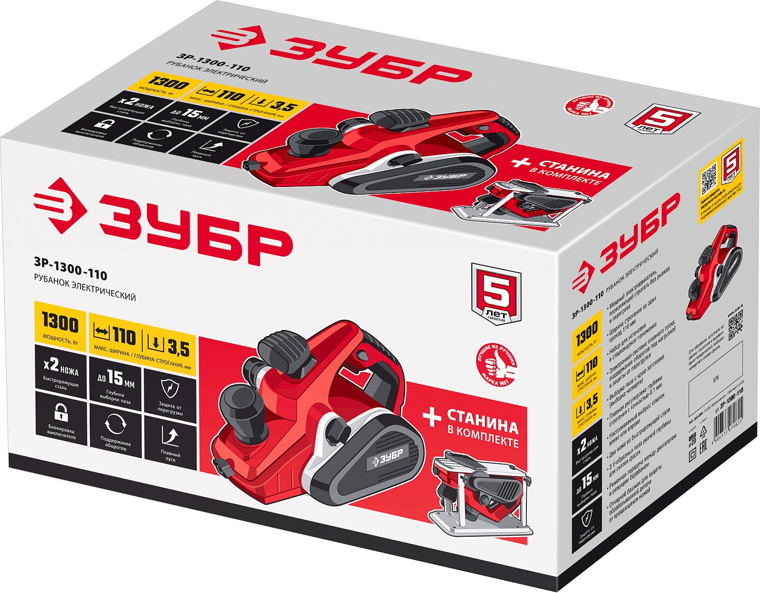 Мощный рубанок для строгания и выравнивания поверхностей, выборки четвертей и снятия фасок, который способен обрабатывать древесину любой твердости шириной 110 мм и глубиной до 3.5 мм. Максимальная функциональность: станина для установки в стационарное положение, электронная система защиты и управления двигателем, выборка четверти, изменяемое направление выброса стружки (влево и вправо), дополнительная рукоятка для удобного хвата, пазы для снятия фасок разной ширины, откидной башмак для защиты заготовки и оператора.