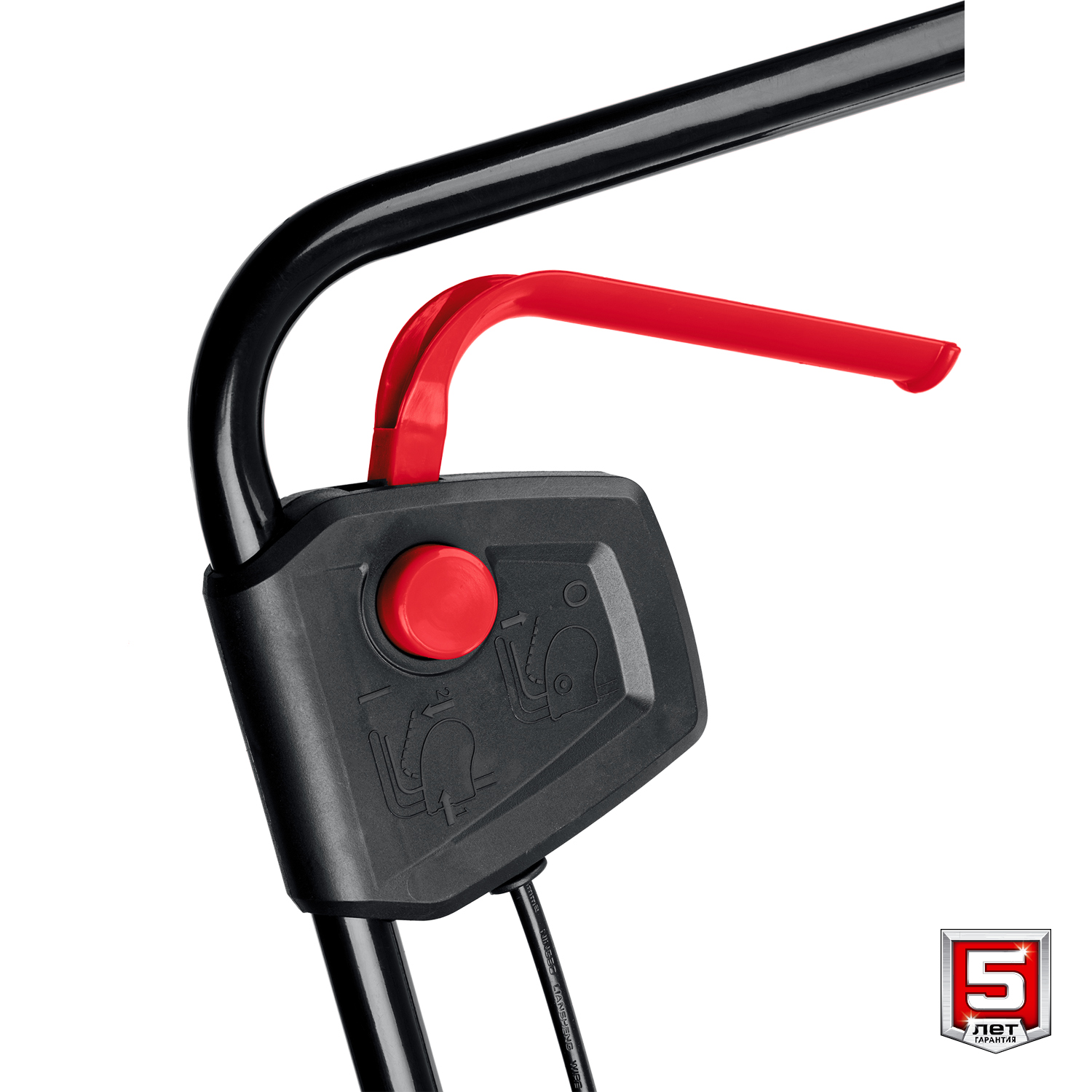 - Облегченные колеса и эргономичная рукоятка облегчают перемещение косилки по газону