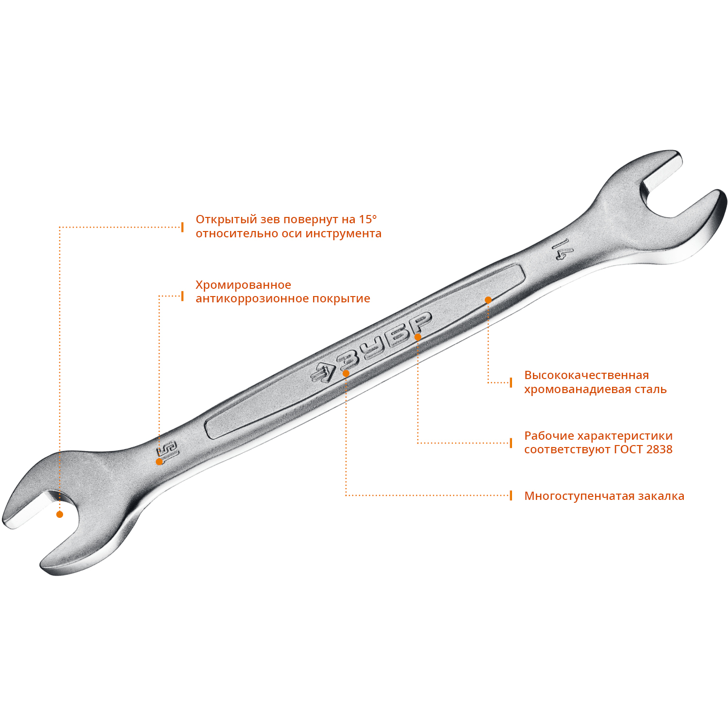 Ключ изготовлен из высококачественной хромованадиевой стали с многоступенчатой закалкой для увеличения ресурса ключа, а также обладает надежным хромированным покрытием для защиты от коррозии