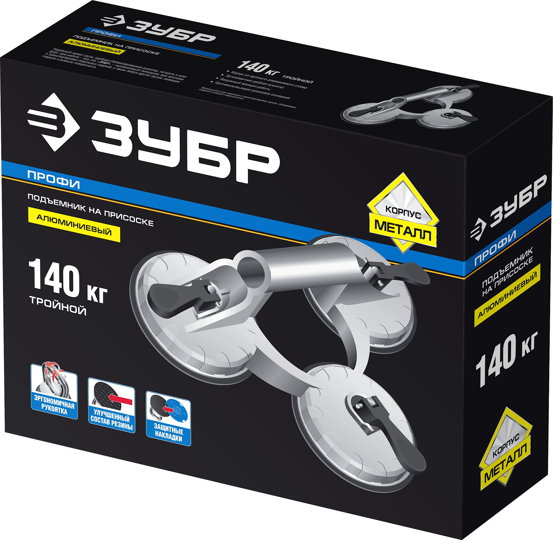 ЗУБР 140 кг, алюминиевый, тройной, стеклодомкрат на присоске, Профессионал (33723-3)