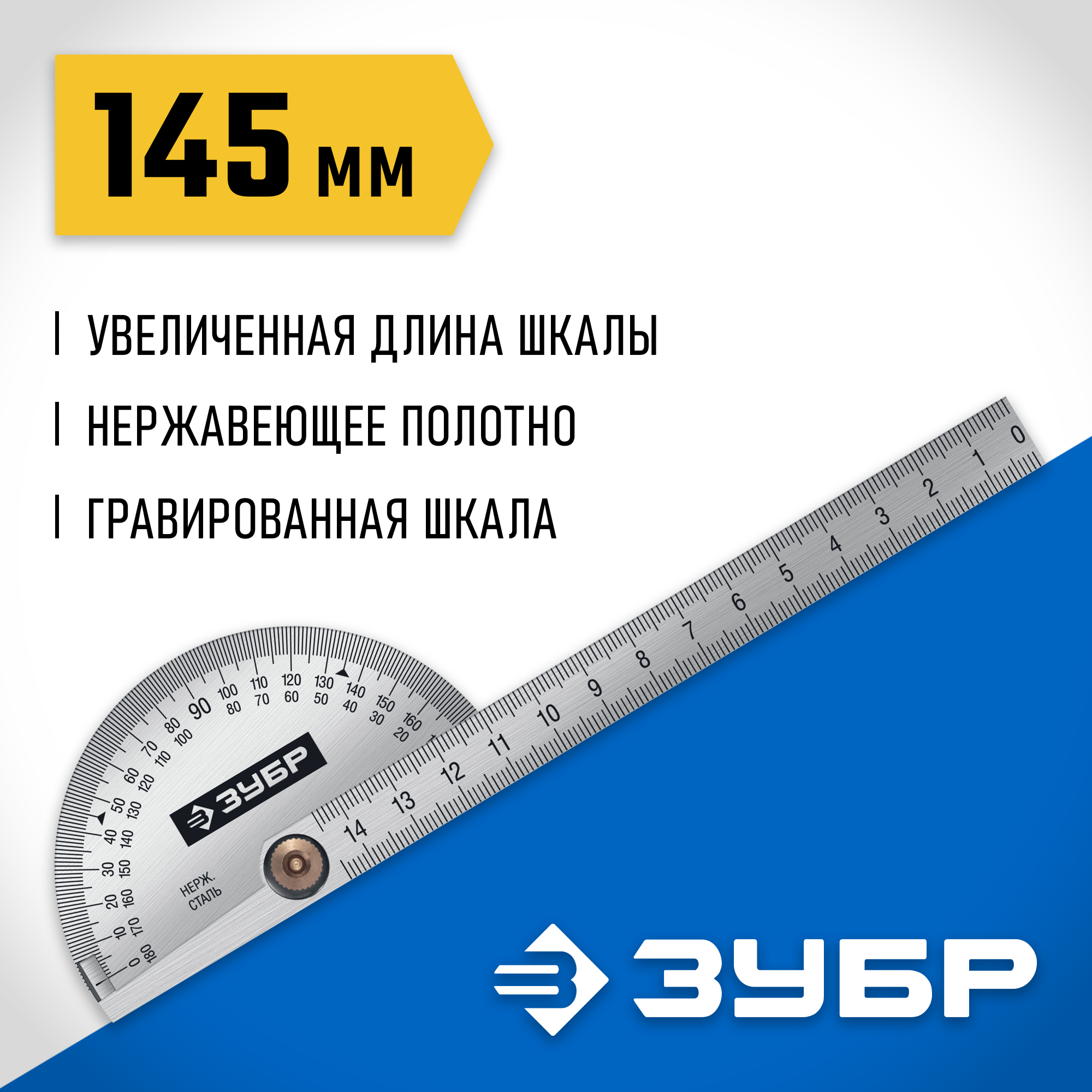 - Полотно из нержавеющей стали с травлёной шкалой увеличивает срок службы инструмента,