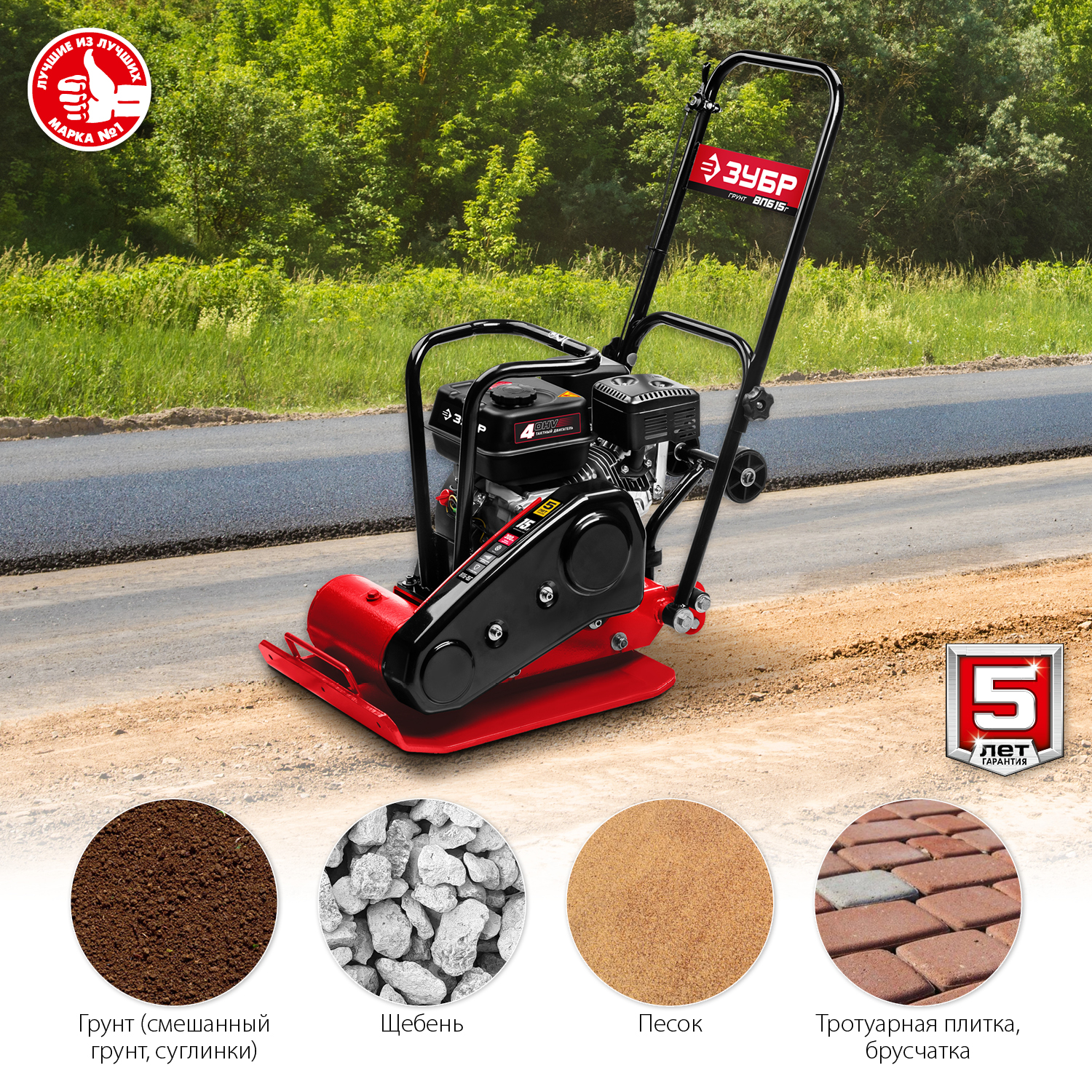 Виброплита предназначена для уплотнения бетонных, асфальтовых и сыпучих материалов, а также для формирования уплотненных поверхностей. Компактная конструкция позволяет осуществлять уплотнение смешанного грунта в самых узких местах, даже в очень узких траншеях. Направляющая рукоятка с виброзащитой позволяет увеличить количество часов непрерывной работы и снизить усталость для оператора. Четырехтактный двигатель ″ЗУБР″ обеспечит беспроблемную эксплуатацию при минимальном сервисном обслуживании на весь срок использования.