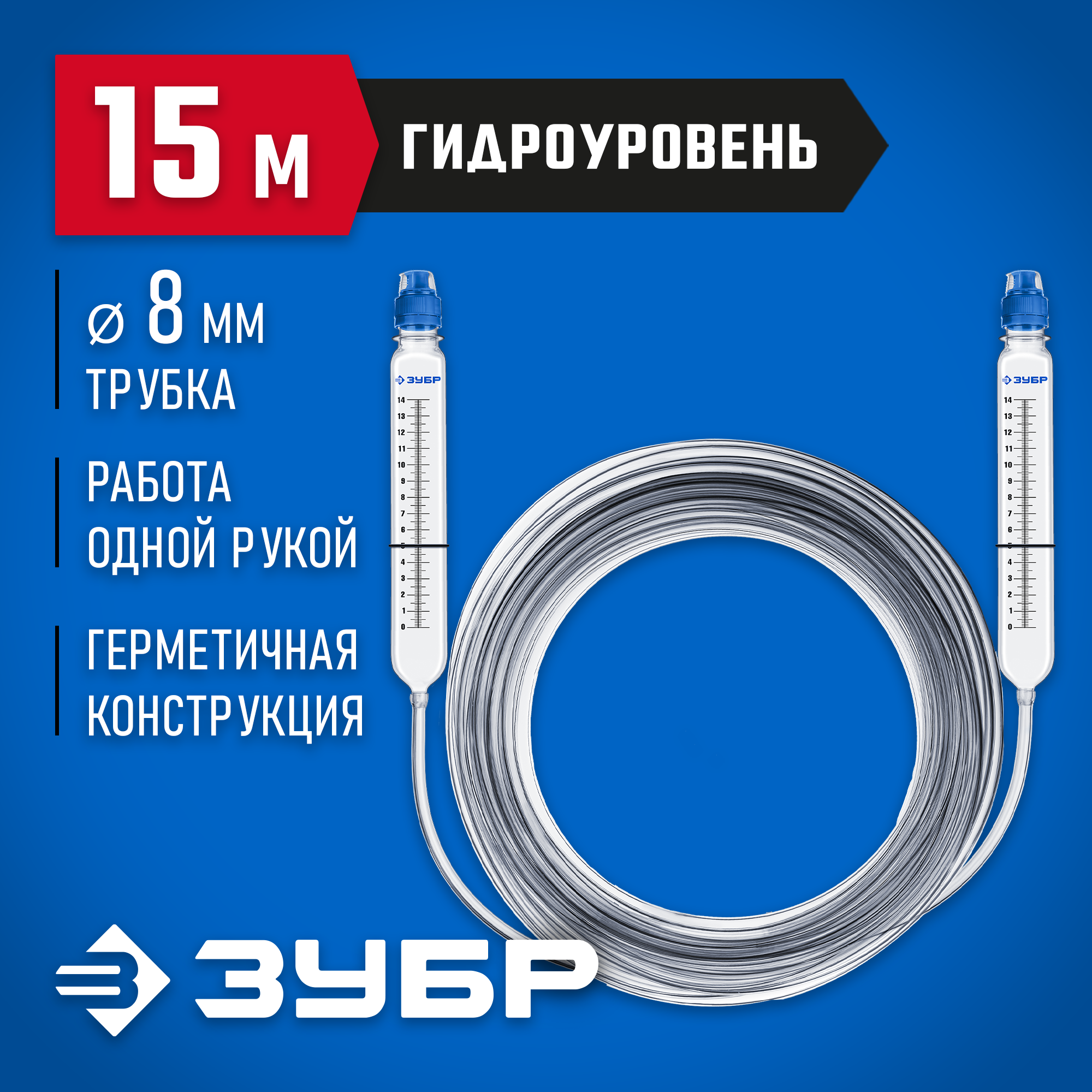 ЗУБР 15 м,d 8 мм, гидроуровень, Профессионал (3482-08-15)