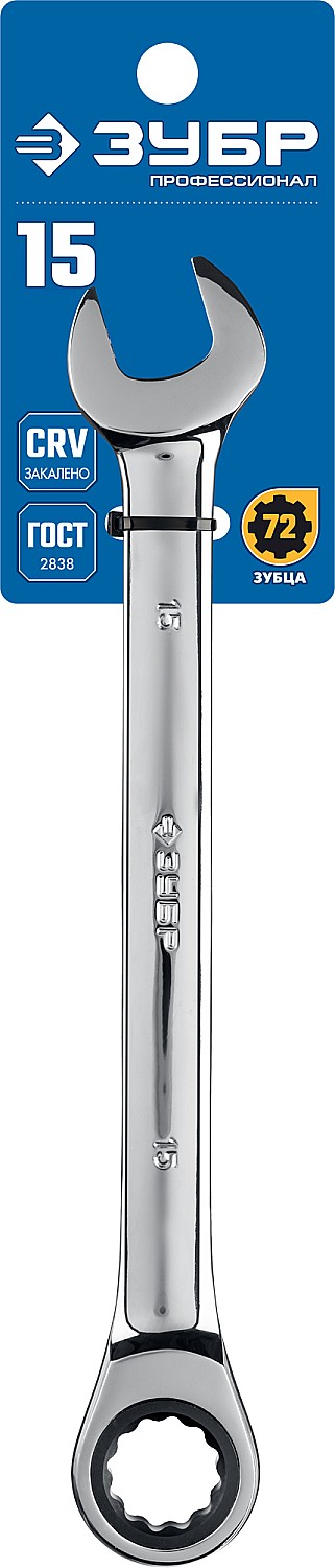 ЗУБР 15 мм, комбинированный трещоточный гаечный ключ, Профессионал (27074-15)