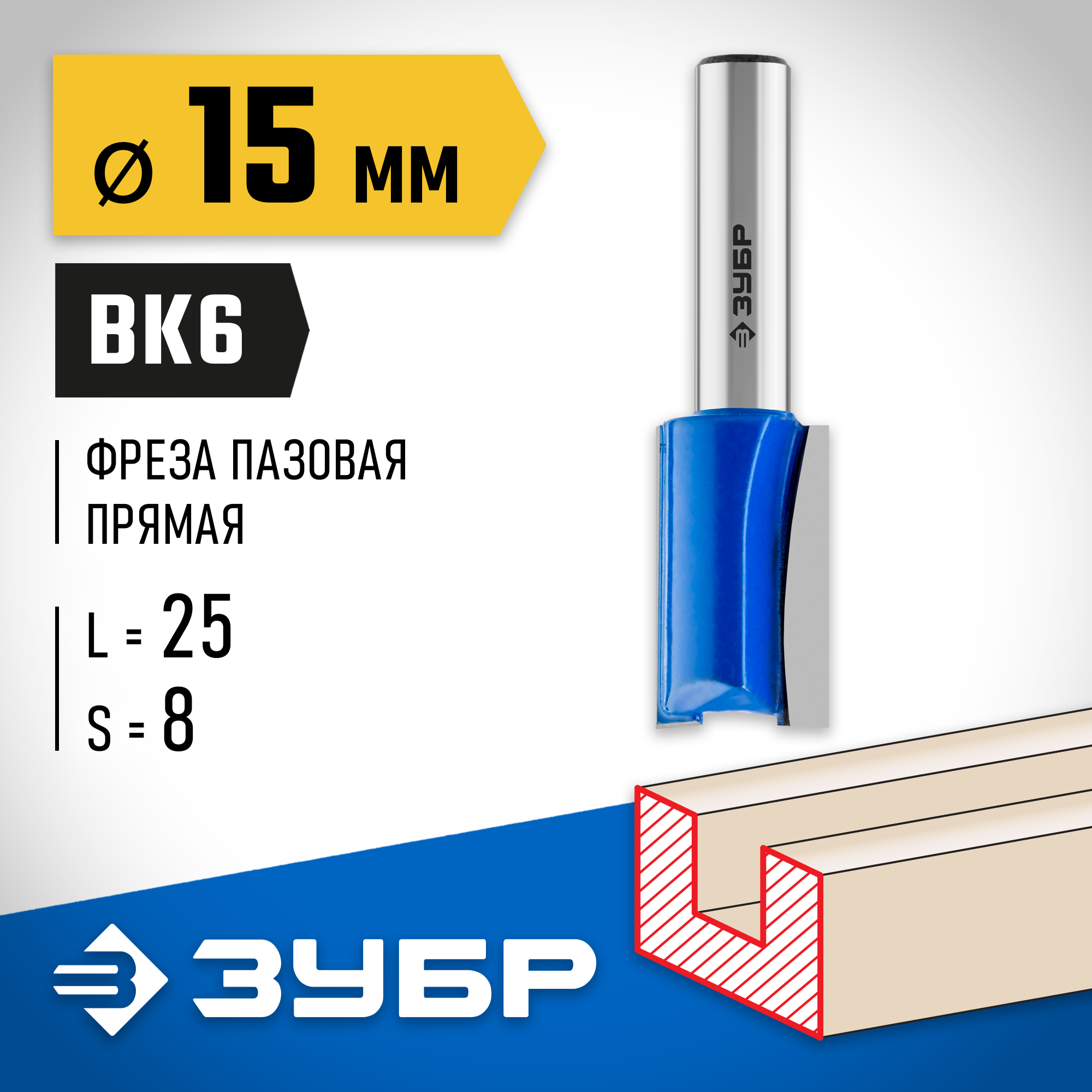 ЗУБР 15 x 25 мм, хвостовик 8 мм, фреза пазовая прямая, Профессионал (28753-15-25)
