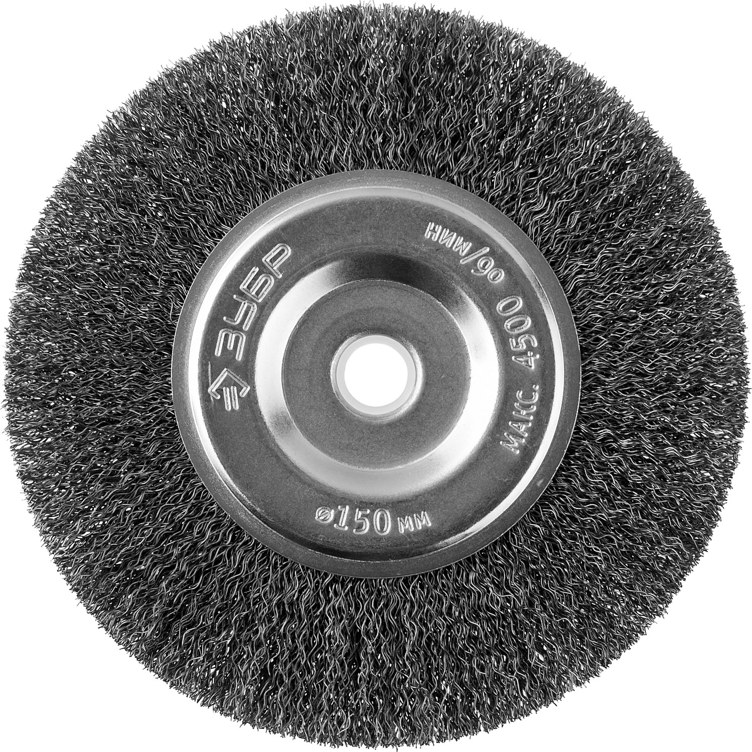 ЗУБР 150 х 12.7 мм, витая, стальная проволока 0.3 мм, дисковая щетка-крацовка для точильно-шлифовального станка, Профессионал (35185-150)