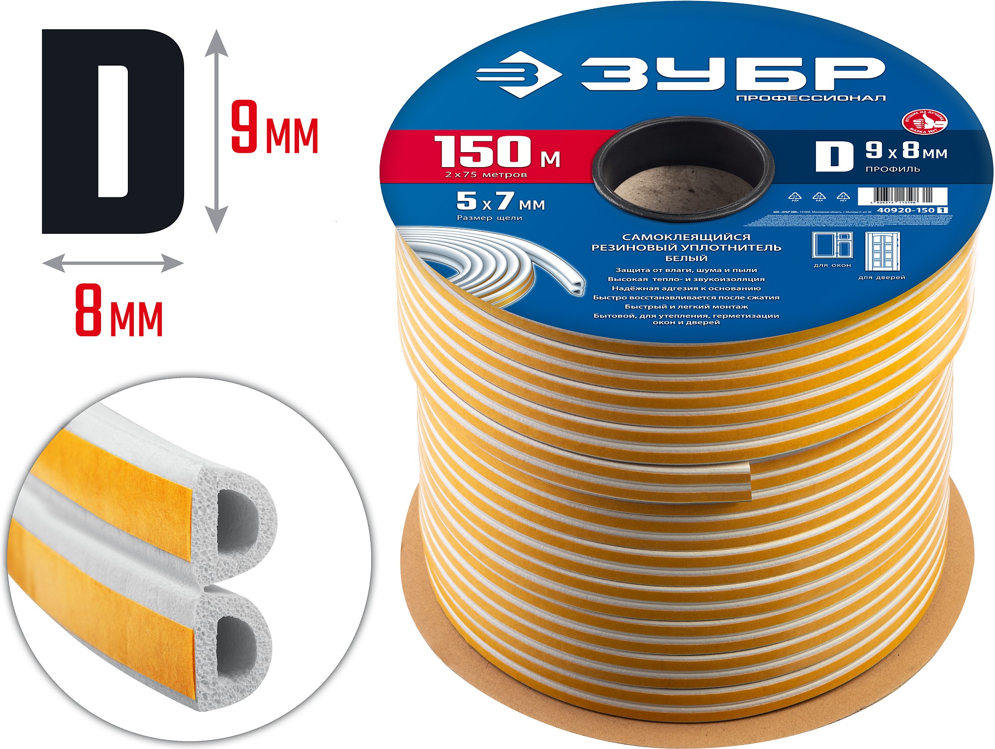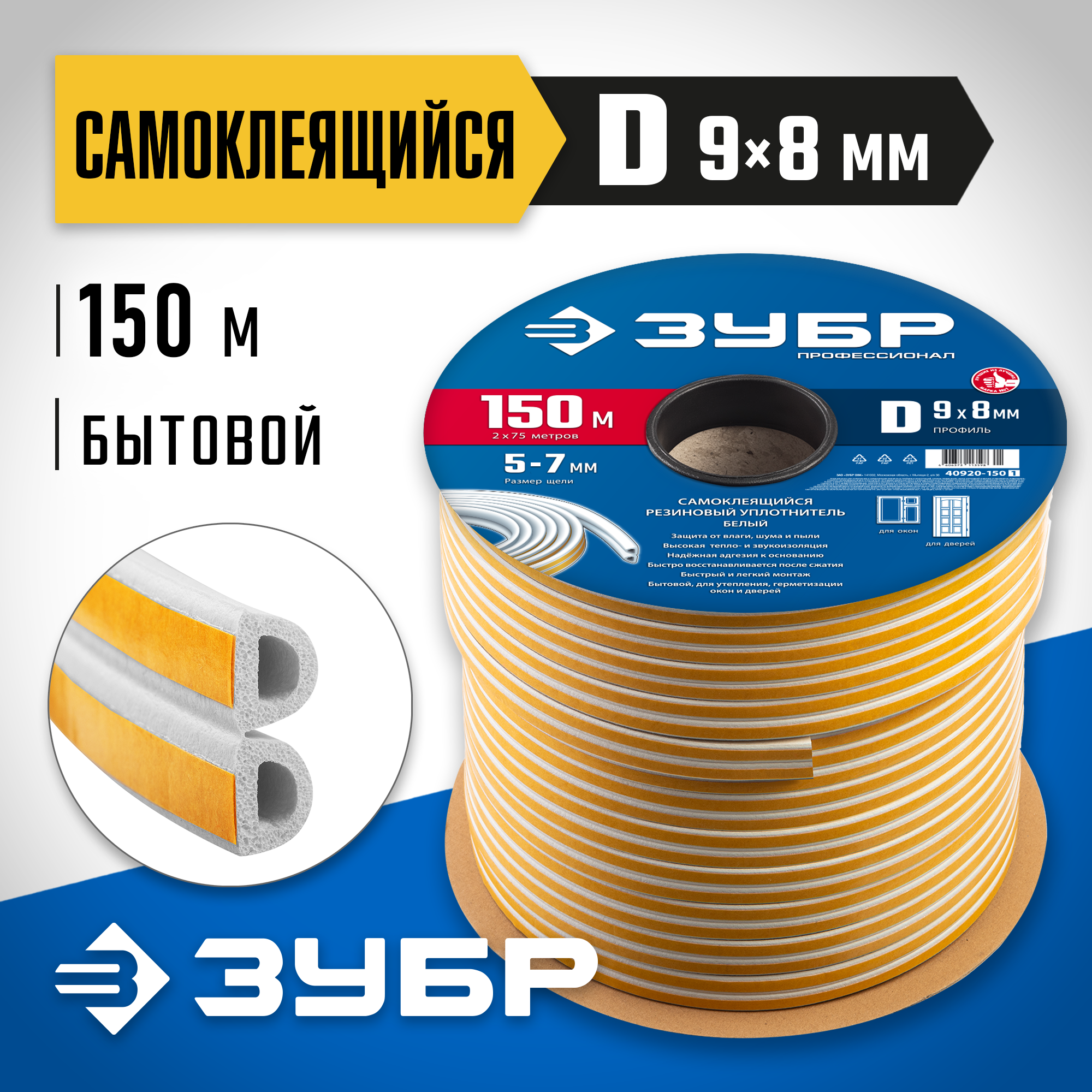Уплотнитель ЗУБР предназначен для уплотнения окон и дверей. Помогает сохранить в доме тепло зимой и прохладу летом, оберегает от холода, сквозняков, шума и пыли.