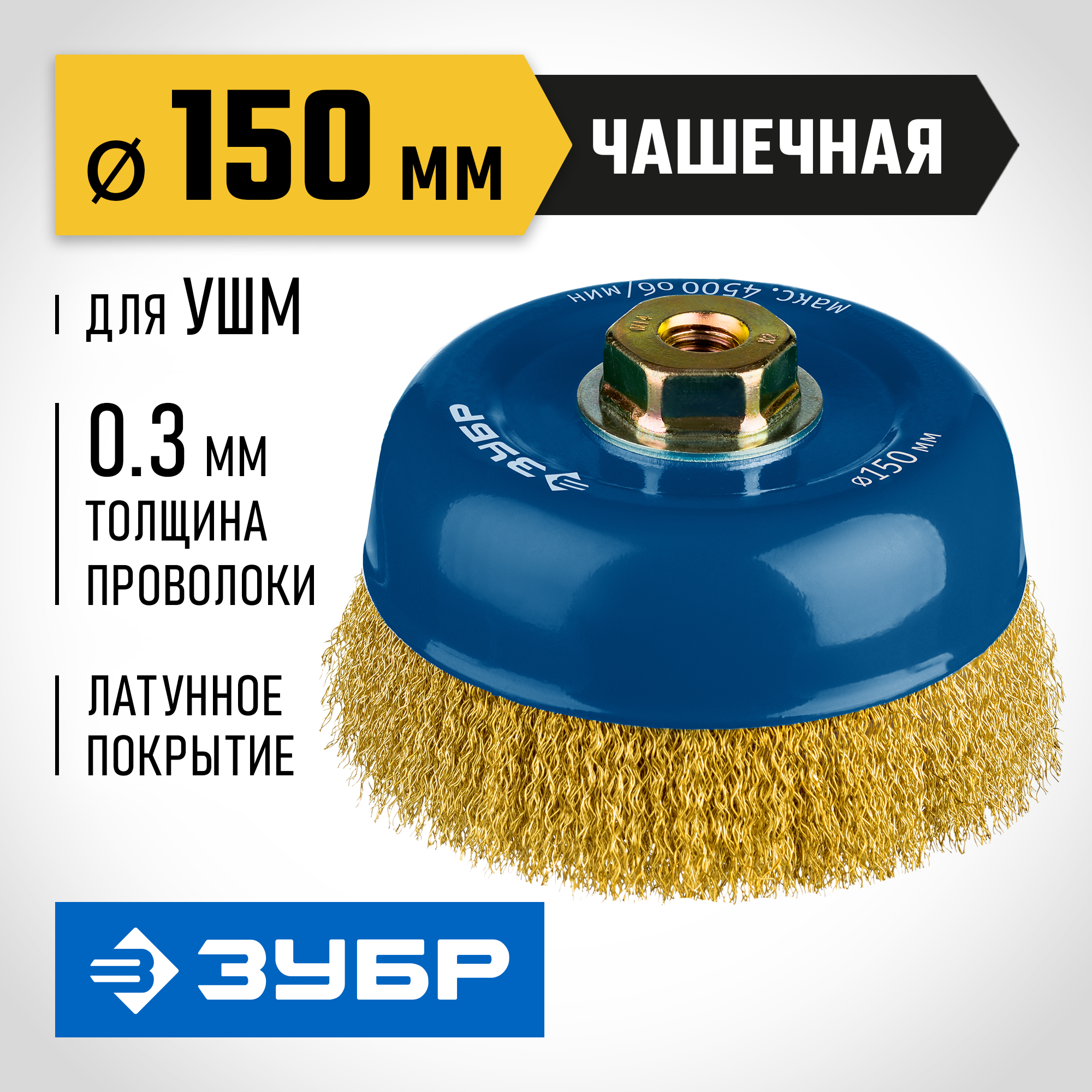 ЗУБР 150 мм, витая латунированная, проволока 0.3 мм, чашечная щетка-крацовка для УШМ, Профессионал (3526-150)