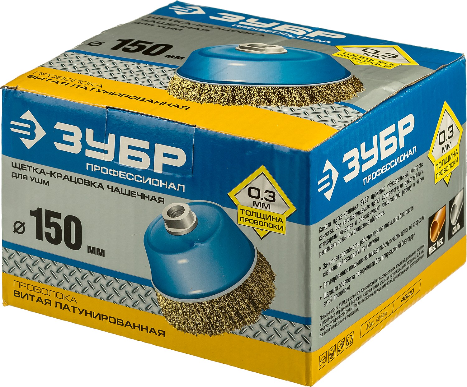 Каждая щетка-крацовка ЗУБР проходит обязательный контроль качества. Все изготавливаемые щетки соответствуют действующим стандартам качества и обеспечивают безопасную работу в четко регламентированном диапазоне оборотов.