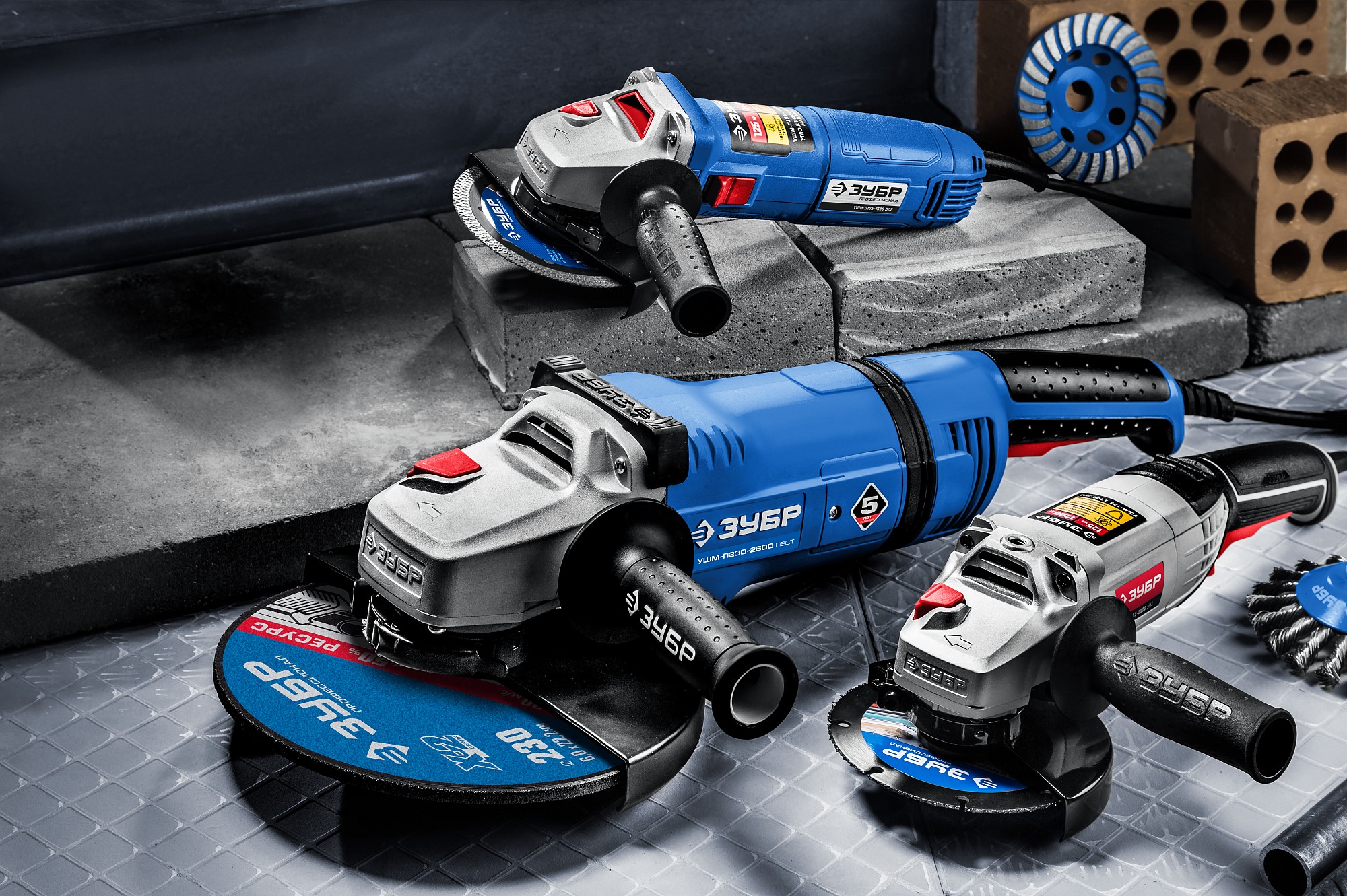 - Компактная, и одна из самых мощных среди одноручных моделей в ассортименте ЗУБР. Способна работать с отрезными, шлифовальными, алмазными дисками, щетками-крацовками всех видов, а также алмазными чашками