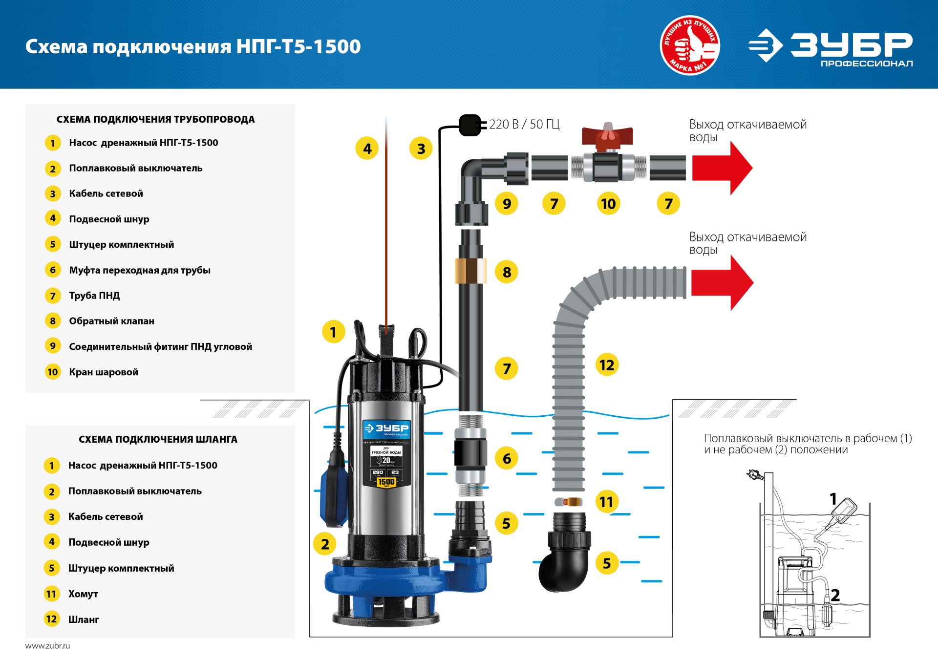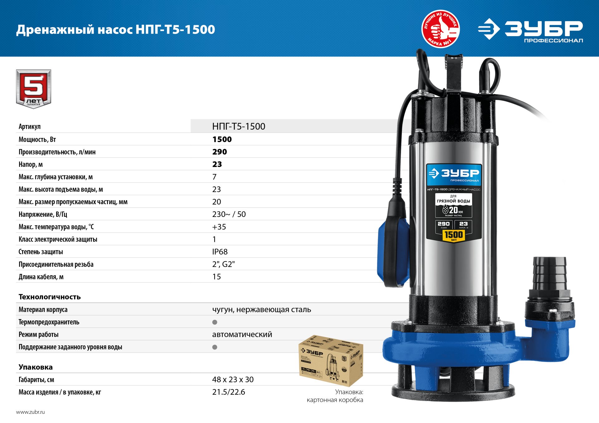 - Наличие кабеля длиной 15 м обеспечивает быструю установку насоса