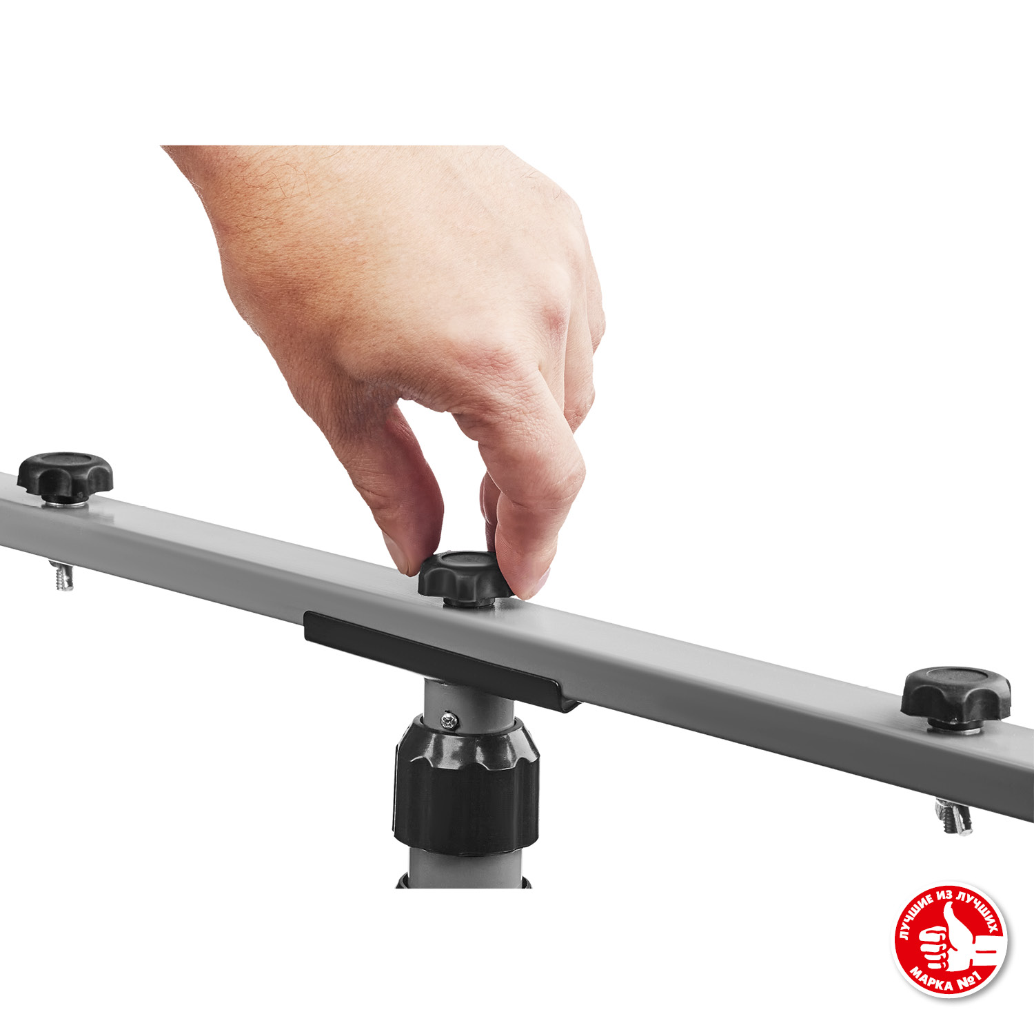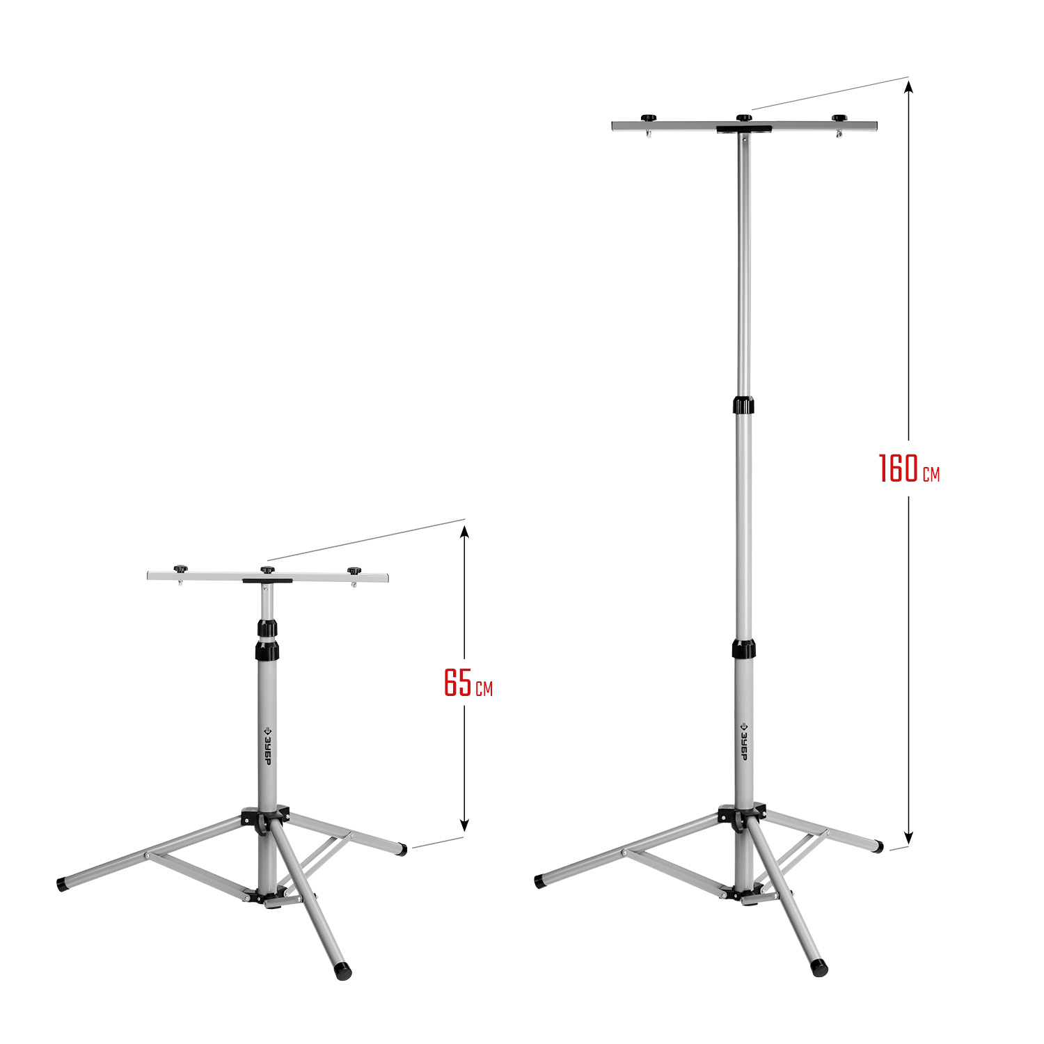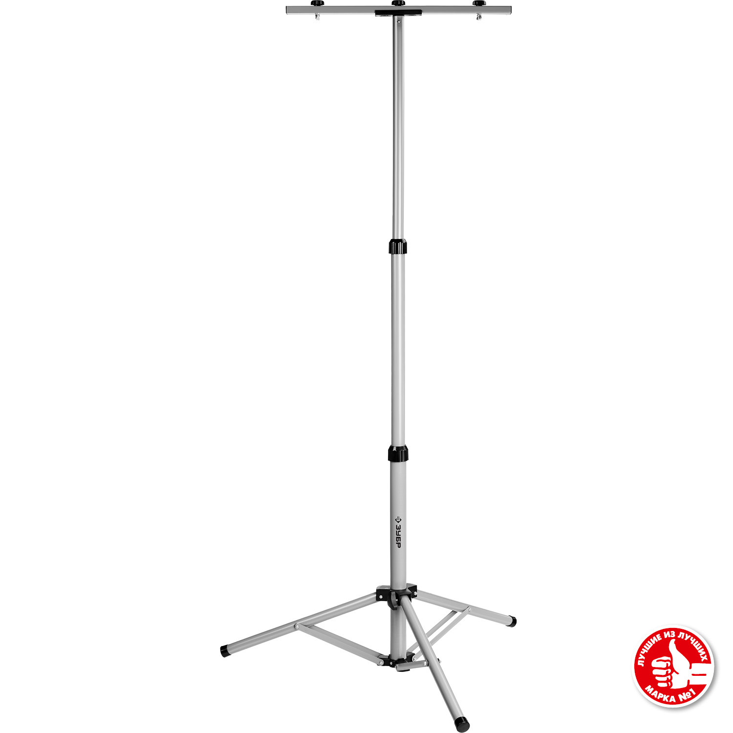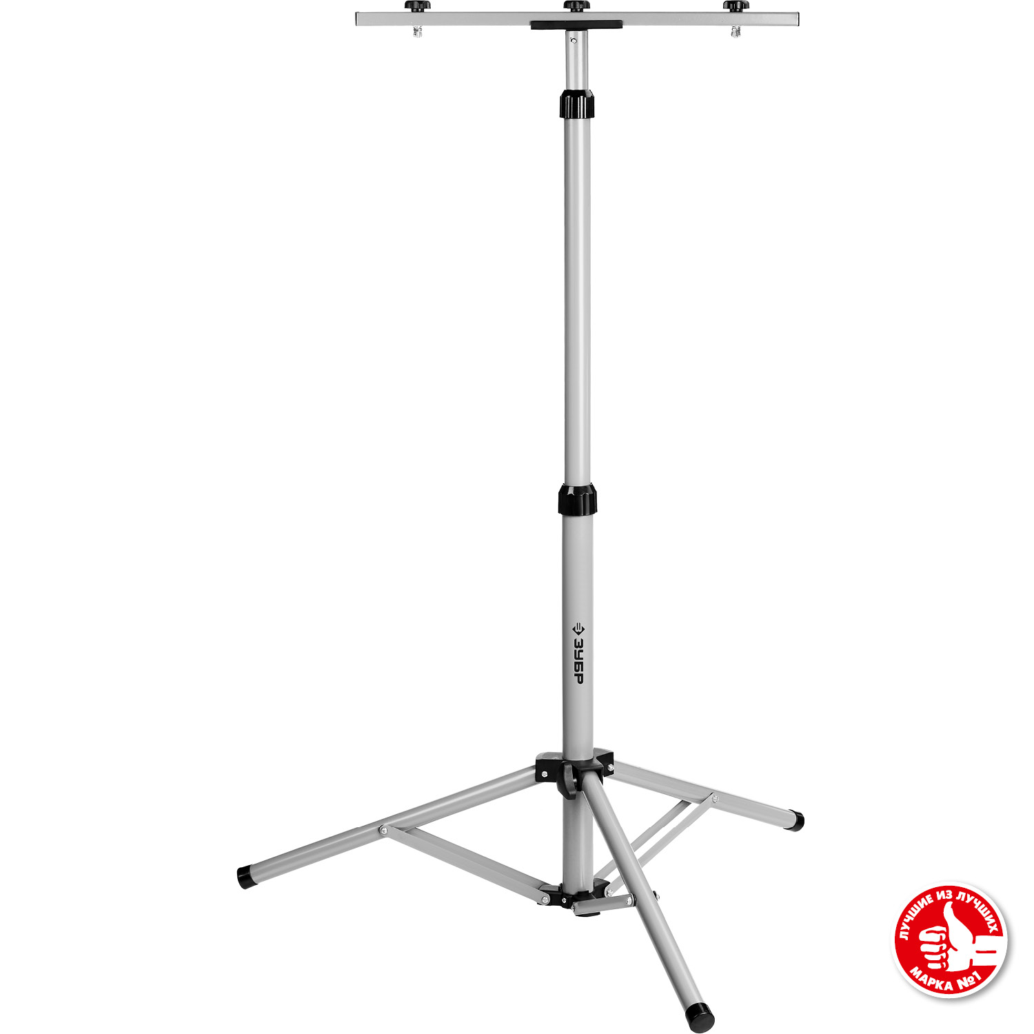 Штатив ЗУБР предназначен для установки прожекторов. Телескопическая конструкция позволяет регулировать высоту установки от 65 до 160 см. Горизонтальная перекладина позволяет одновременно установить 2 прожектора. Легкий и быстрый монтаж. Изготовлен из высокопрочной стали и выдерживает нагрузку до 8 кг. Размер в сложенном виде — 10х63 см. Диаметр основания треноги — 96 см.