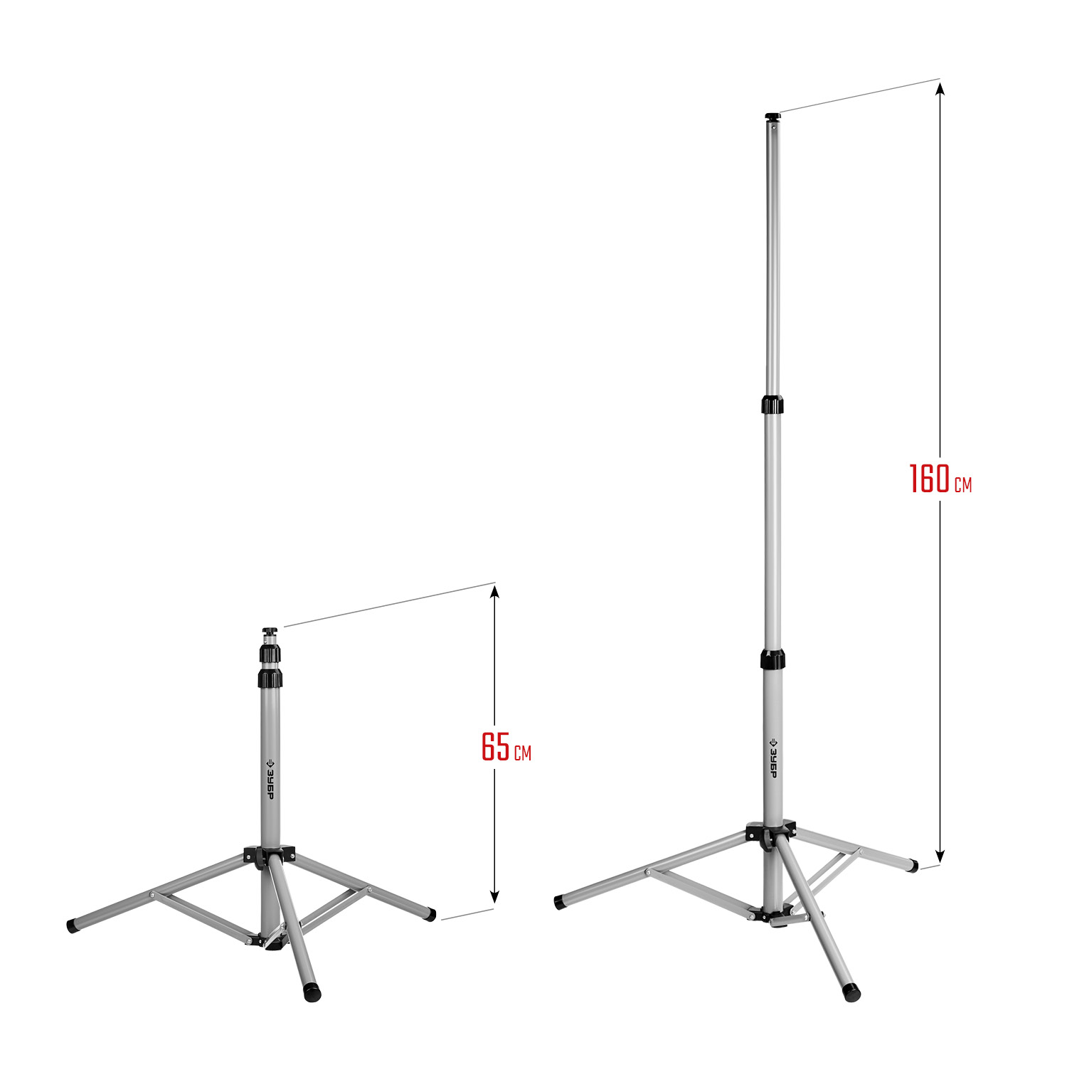Штатив ЗУБР предназначен для установки прожекторов. Телескопическая конструкция позволяет регулировать высоту установки от 65 до 160 см. Легкий и быстрый монтаж. Изготовлен из высокопрочной стали и выдерживает нагрузку до 8 кг. Размер в сложенном виде — 10х63 см. Диаметр основания треноги — 96 см.