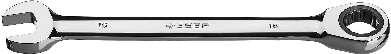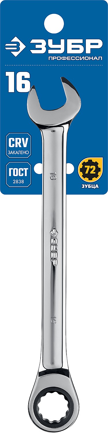 ЗУБР 16 мм, комбинированный трещоточный гаечный ключ, Профессионал (27074-16)