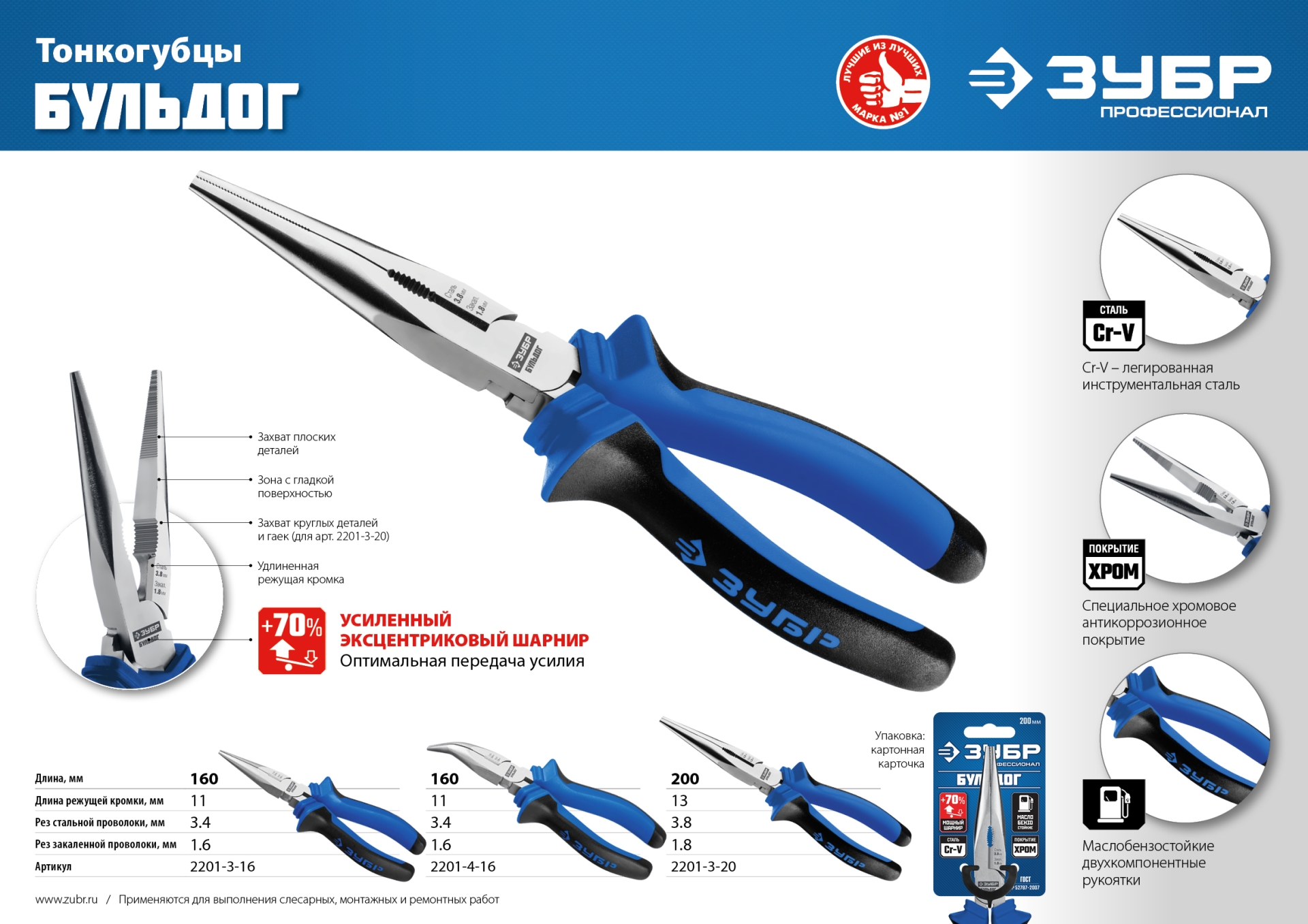 Профессиональный губцевый инструмент отвечает высочайшим промышленным стандартам качества, разработан для захвата и удержания плоских и круглых предметов, перекусывания проволоки средней твердости.