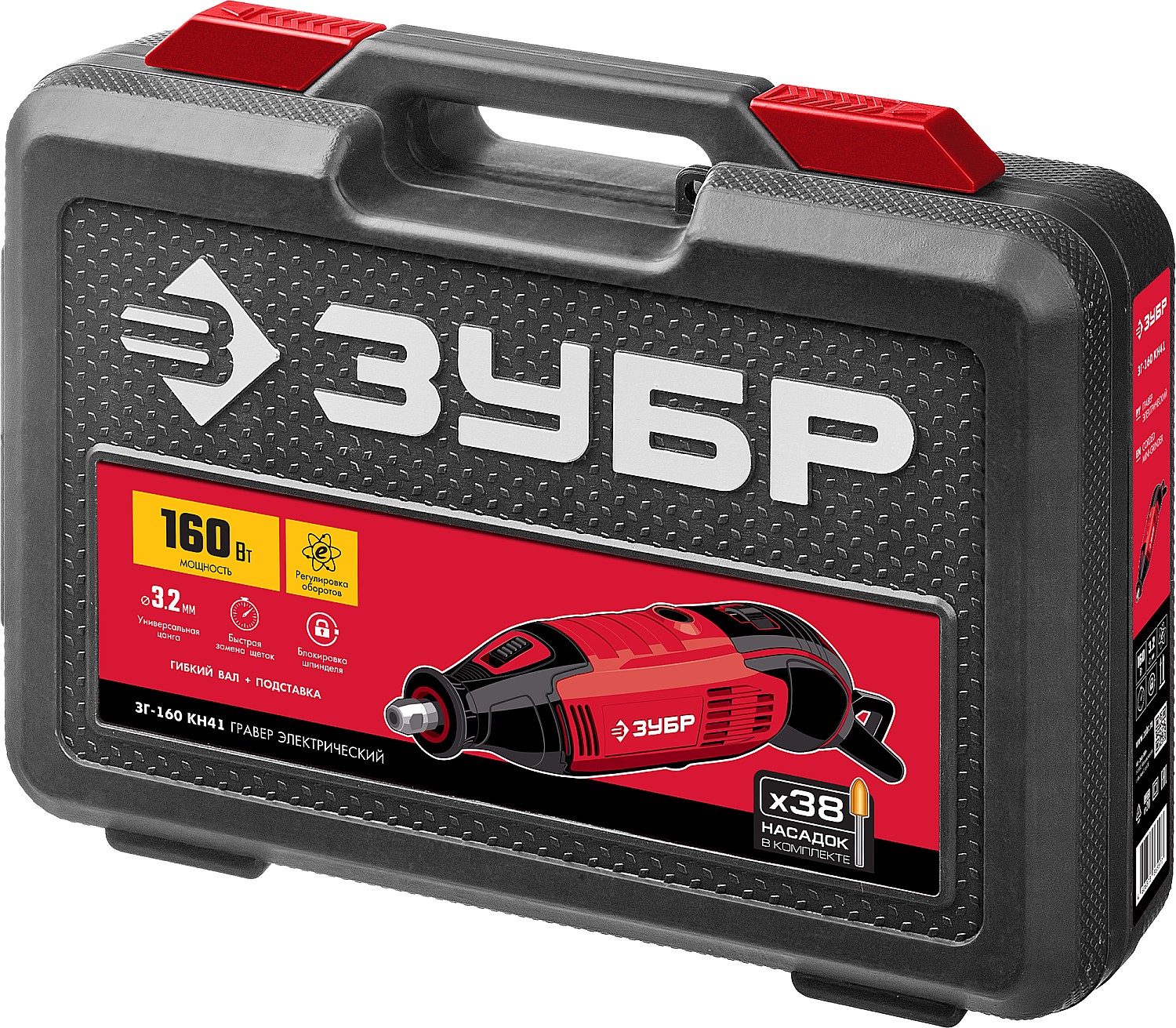 Гравер ЗУБР - универсальное устройство для широкого спектра работ (резка, сверление, полирование, гравирование, шлифование). Расширенная комплектация включает в себя базовый набор насадок для начала работы сразу после покупки. Мощный двигатель позволяет эффективно работать даже при большой нагрузке. ЗУБР - реализуя Ваши мечты