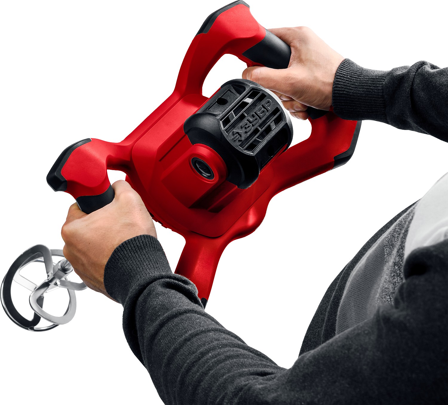 Простой и надежный миксер для перемешивания растворов и смесей любого типа. Широкий диапазон скоростей перемешивания благодаря двухскоростному редуктору и электронной регулировке оборотов. Уверенное оперирование изделием за счет широко разнесенных рукояток с резиновым покрытием.