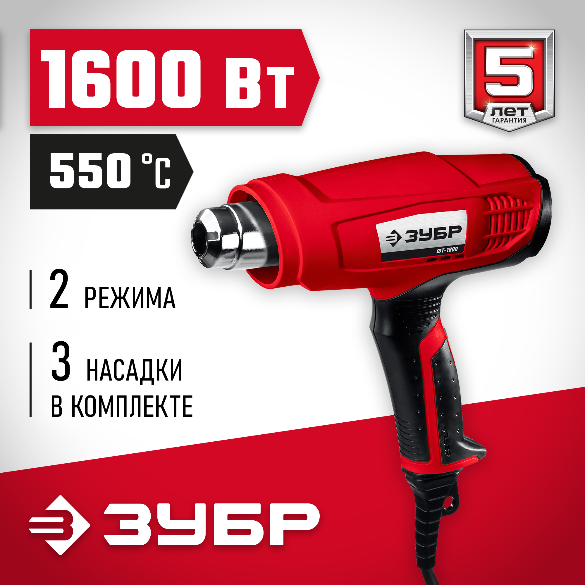 - 3 различные насадки в комплекте позволяют выполнять любую работу – от точечного нагрева до сушки больших площадей