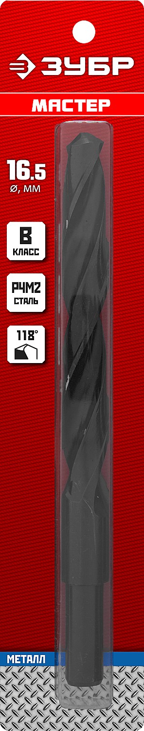 ЗУБР 16.5 х 184 мм, сталь Р4М2, класс В, проточенный хвостовик, сверло по металлу (29605-16.5)