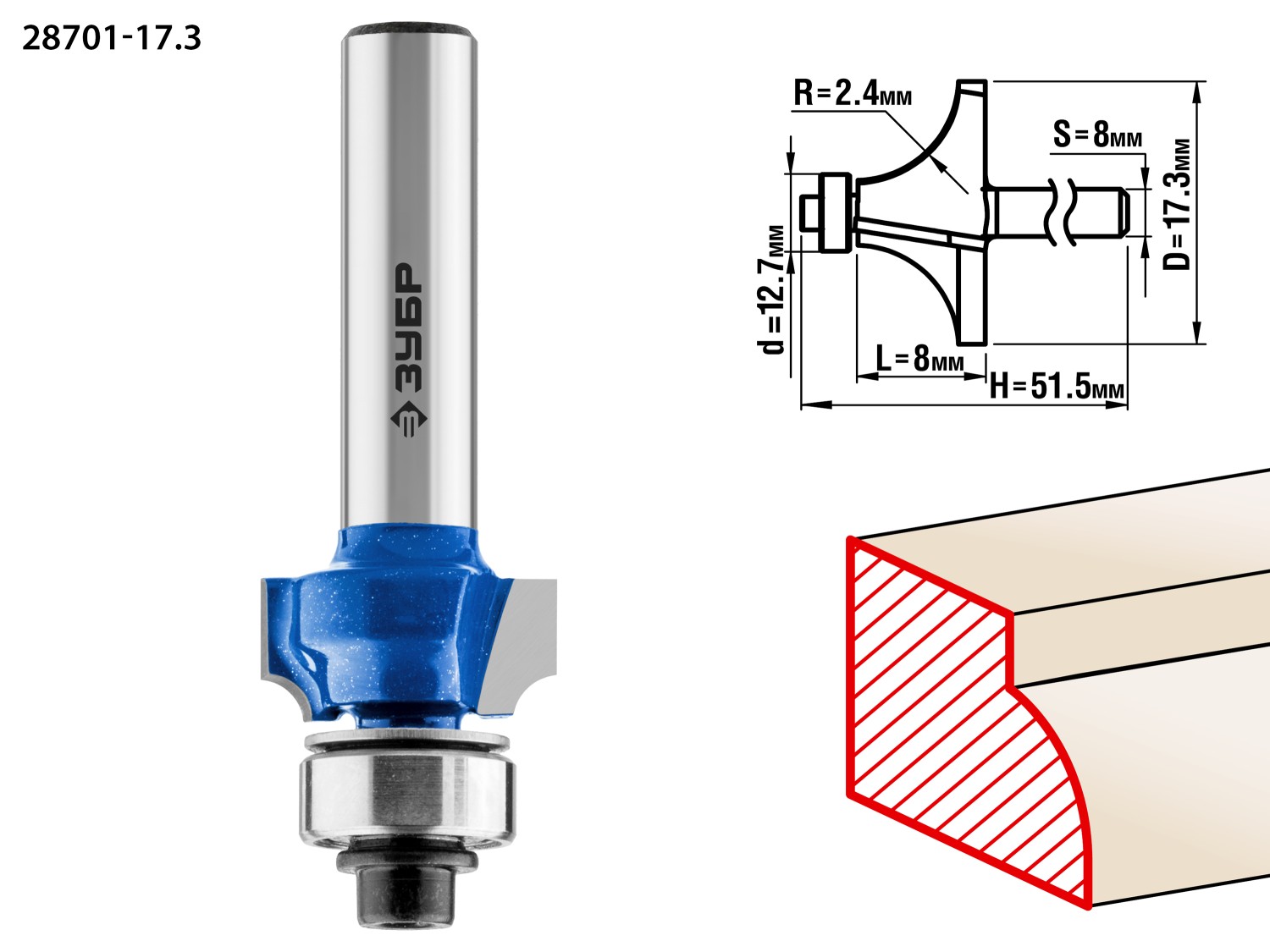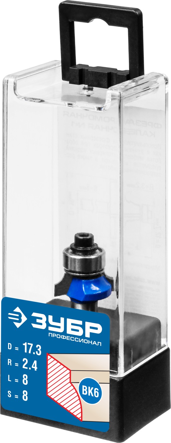 ЗУБР 17.3 x 8 мм, радиус 2.4 мм, фреза кромочная калевочная №1, Профессионал (28701-17.3)