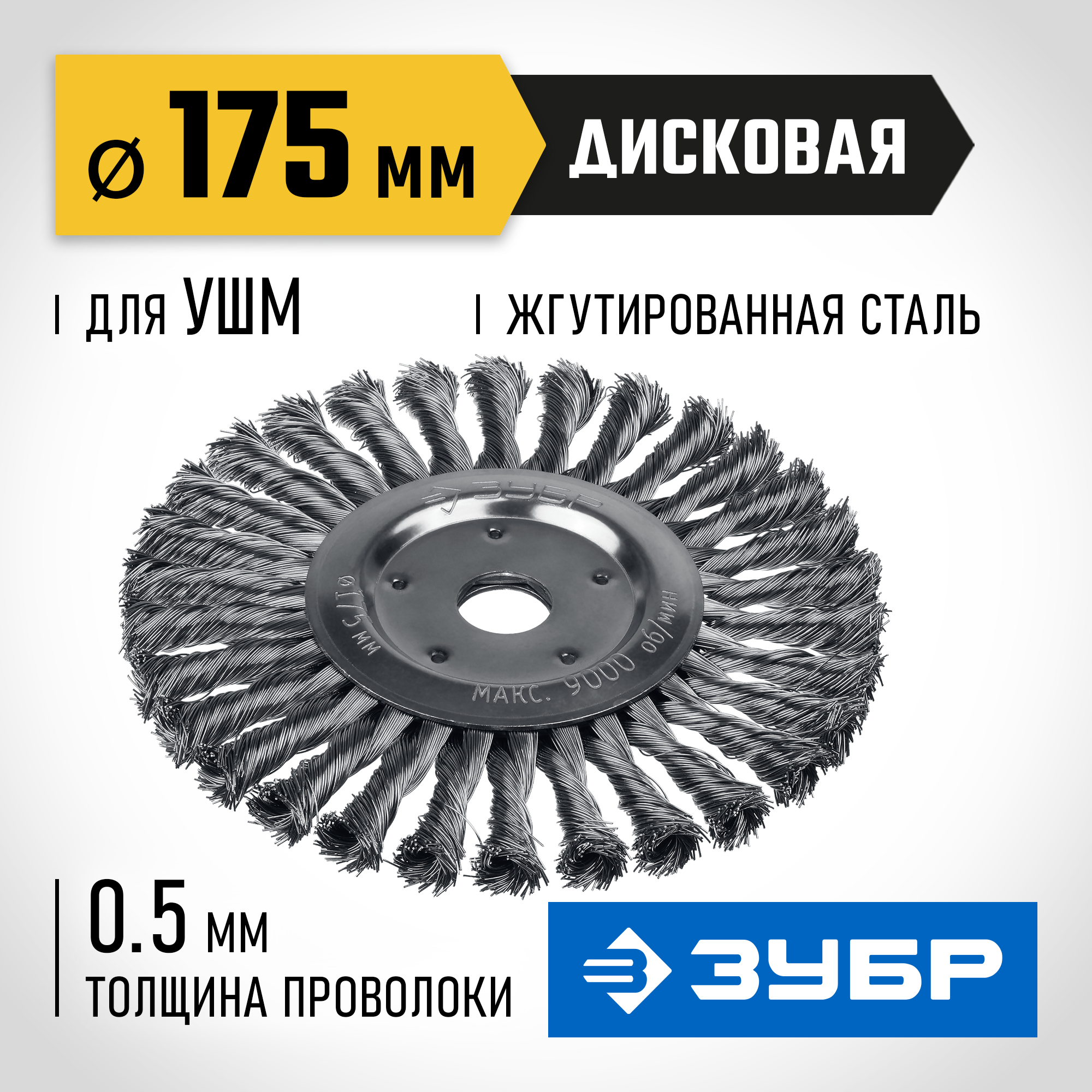 ЗУБР 175 х 22 мм, жгутированная стальная проволока 0.5 мм, щетка дисковая для УШМ, Профессионал (35190-175)