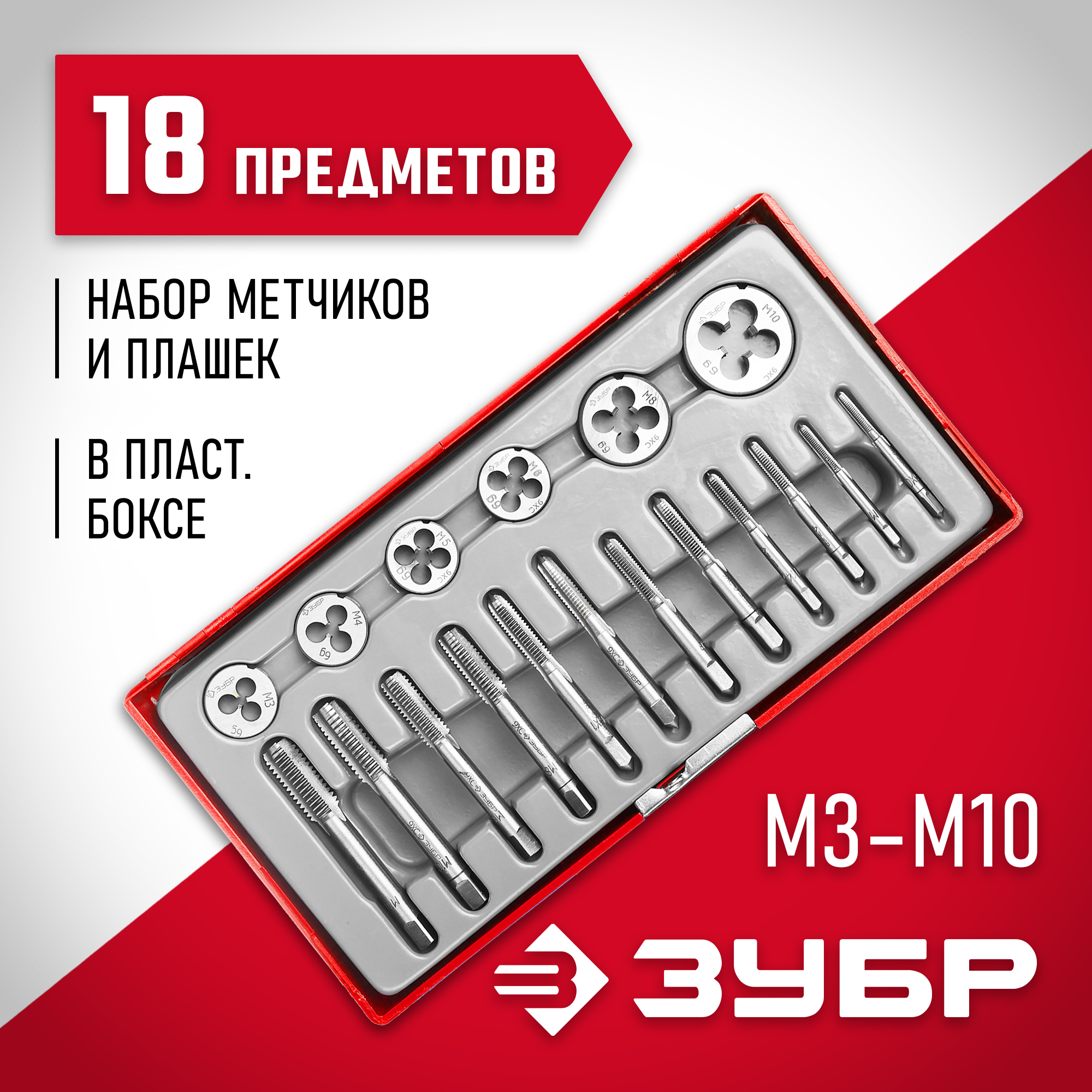 Набор предназначен для резьбонарезных работ в конструкциях и заготовках из сталей и цветных металлов. Метчики ручные однопроходные используются для нарезания внутренней метрической резьбы с нормальным шагом в глухих и сквозных отверстиях. Плашки предназначены для нарезания внешней метрической резьбы с нормальным шагом.
