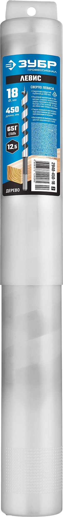ЗУБР 18 x 450/360 мм, шестигранный хвостовик, cверло левиса по дереву, Профессионал (2948-450-18)