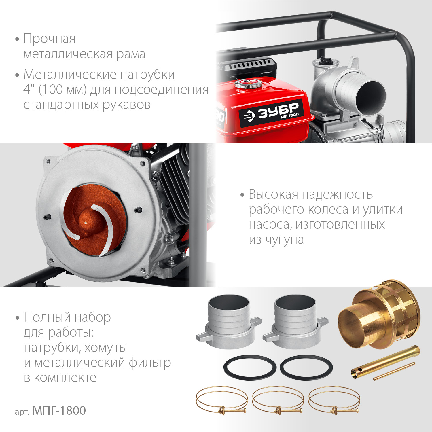 - Простой доступ к насосной части благодаря оригинальному крепежу значительно упрощает обслуживание мотопомпы