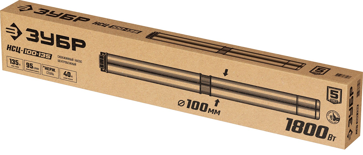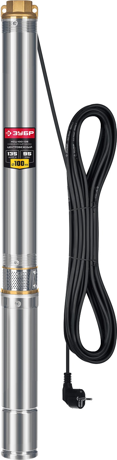 ЗУБР 1800 Вт, 135 м напор, скважинный центробежный насос, корпус из нержавеющей стали (НСЦ-100-135)
