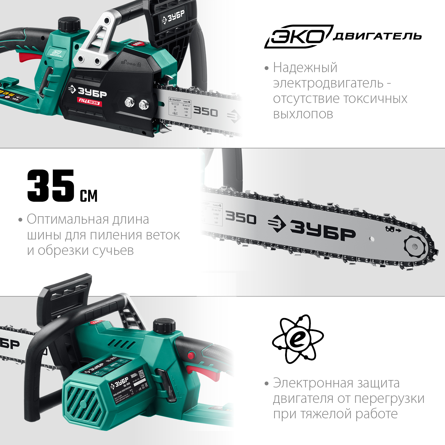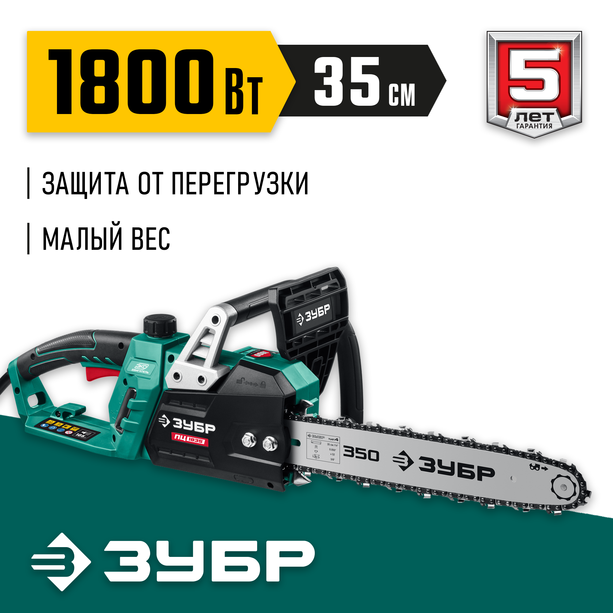 - Шина длиной 350 мм позволяет распиливать заготовки большого диаметра