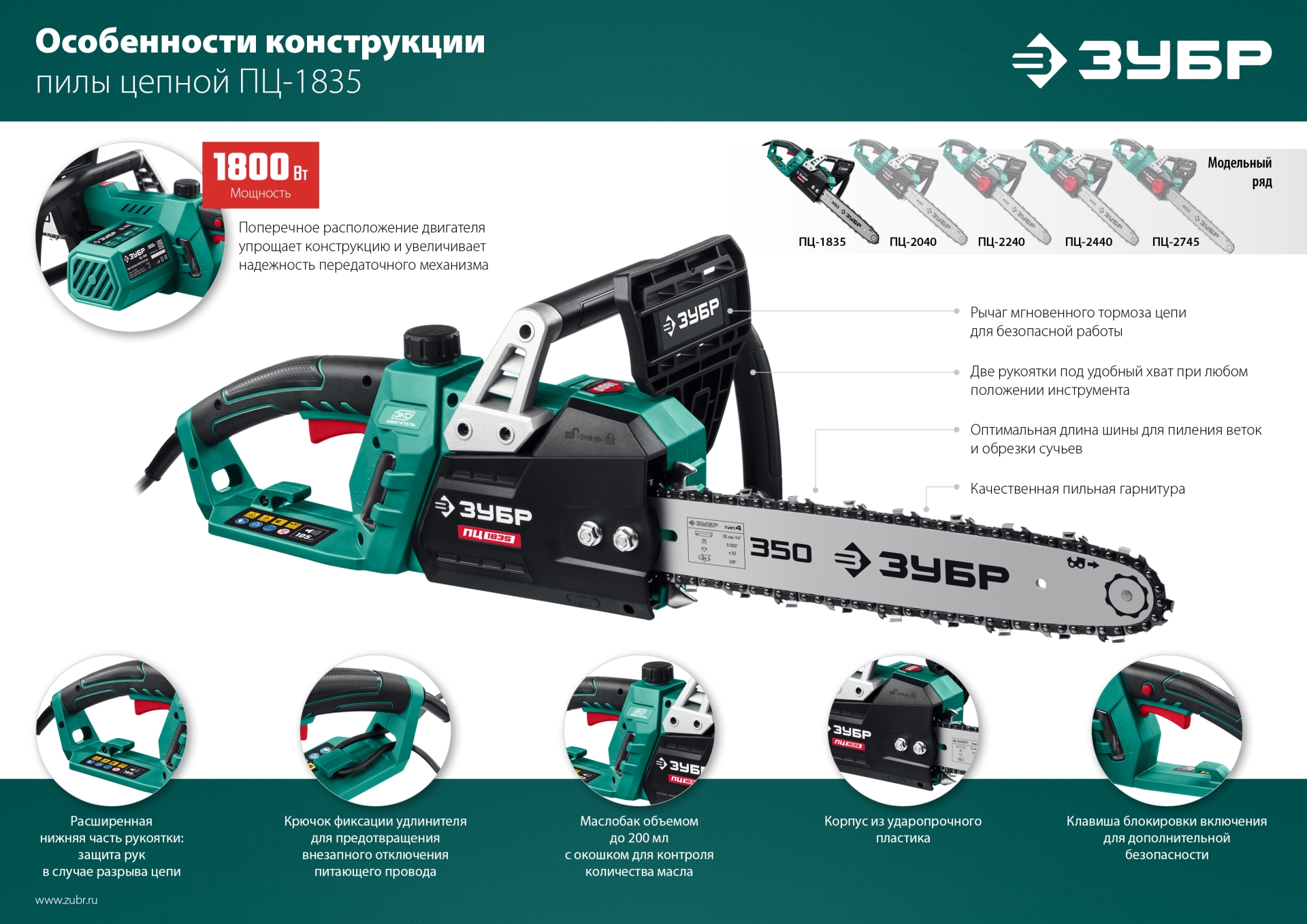 - Автоматическая система смазки цепи дозированно подает масло в зависимости от нагрузки