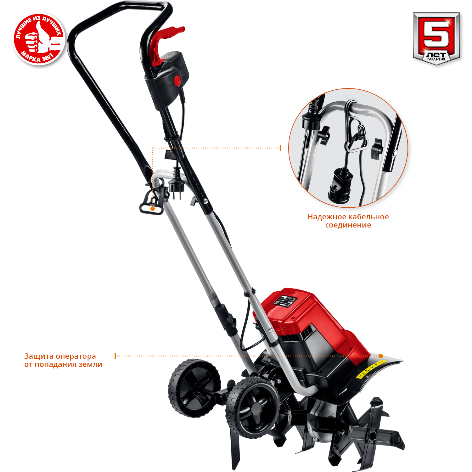 - На корпусе предусмотрен щиток, который защищает оператора от попадания земли
